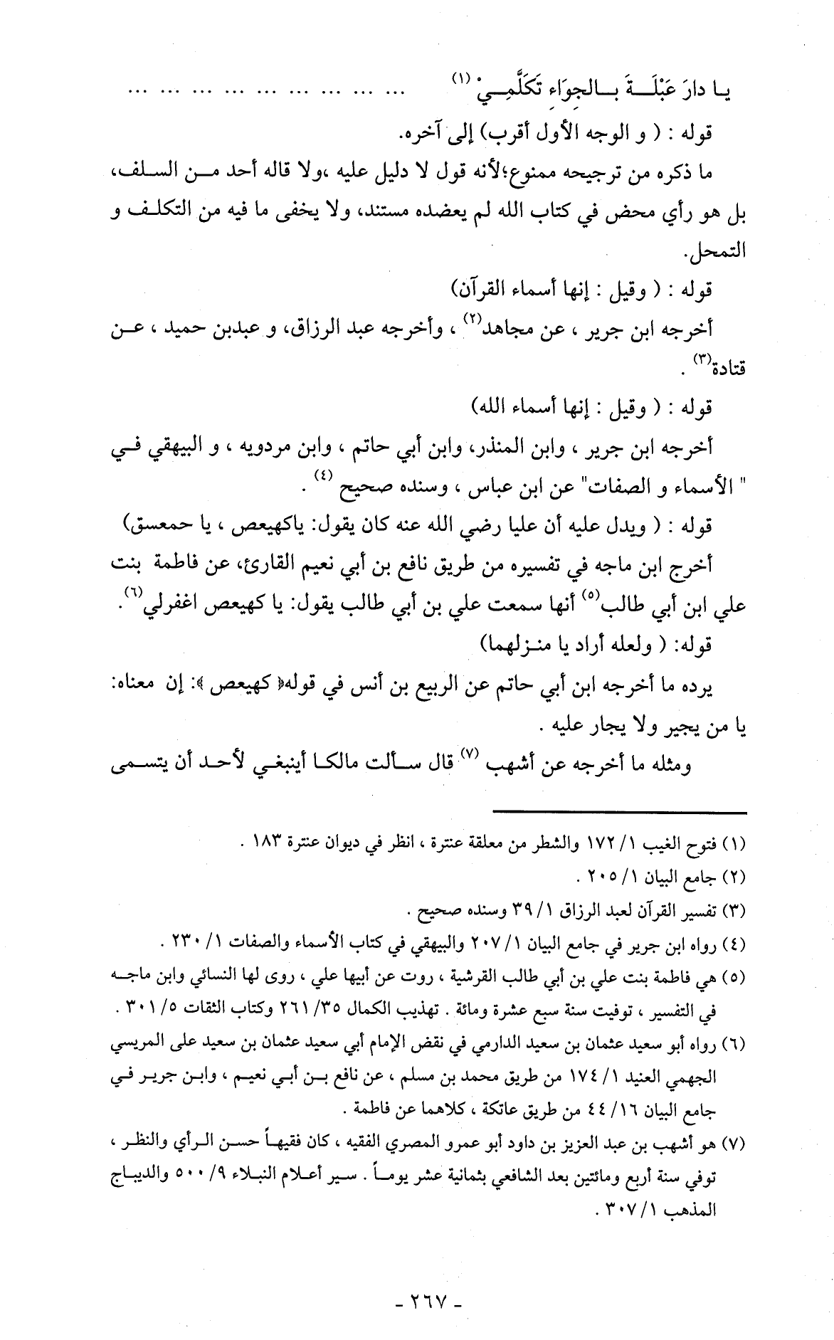 قوله: (ويدل عليه أن عليا رضي الله عنه كان يقول: يا كهيعص، يا حم عسق)