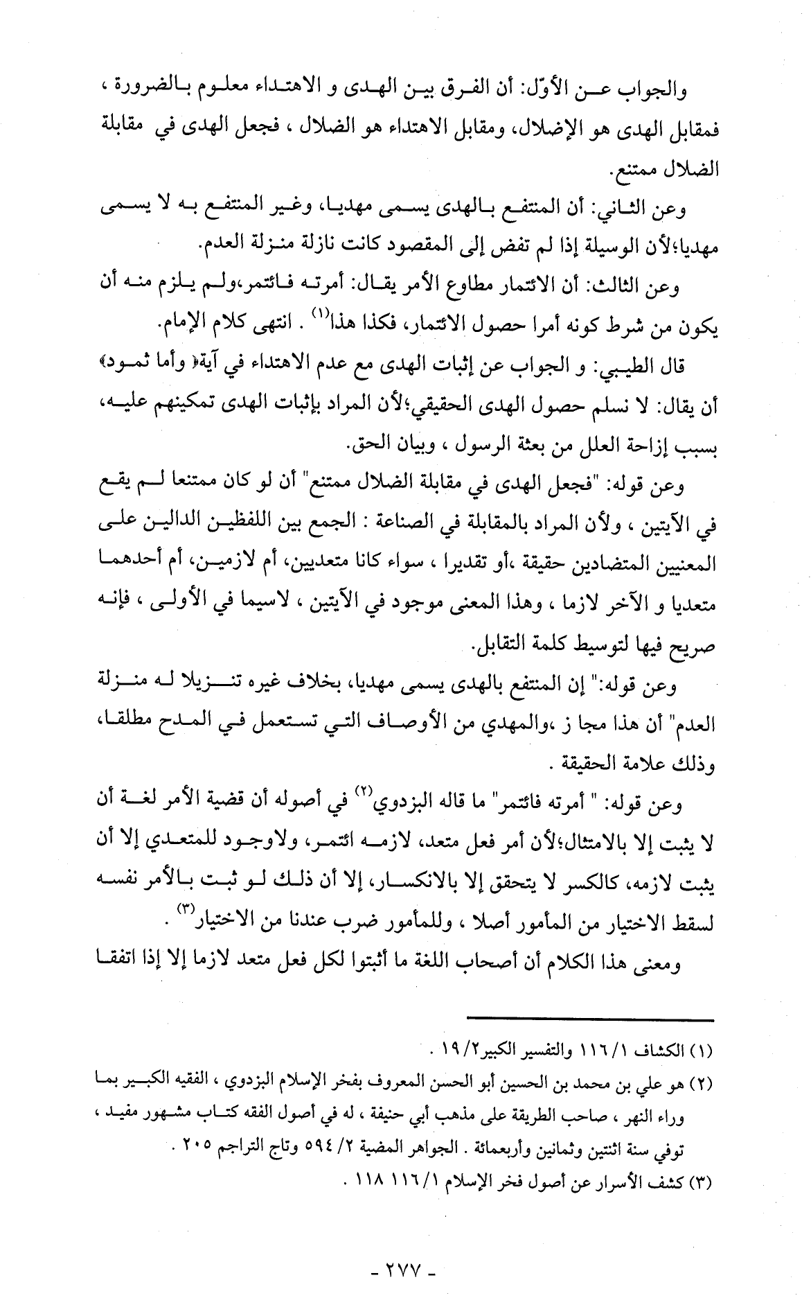 والجواب عن الأوّل: أن الفرق بين الهدى والاهتداء معلوم بالضرورة، فمقابل الهدى هو الإضلال، ومقابل الاهتداء هو الضلال، فجعل الهدى في مقابلة الضلال ممتنع.