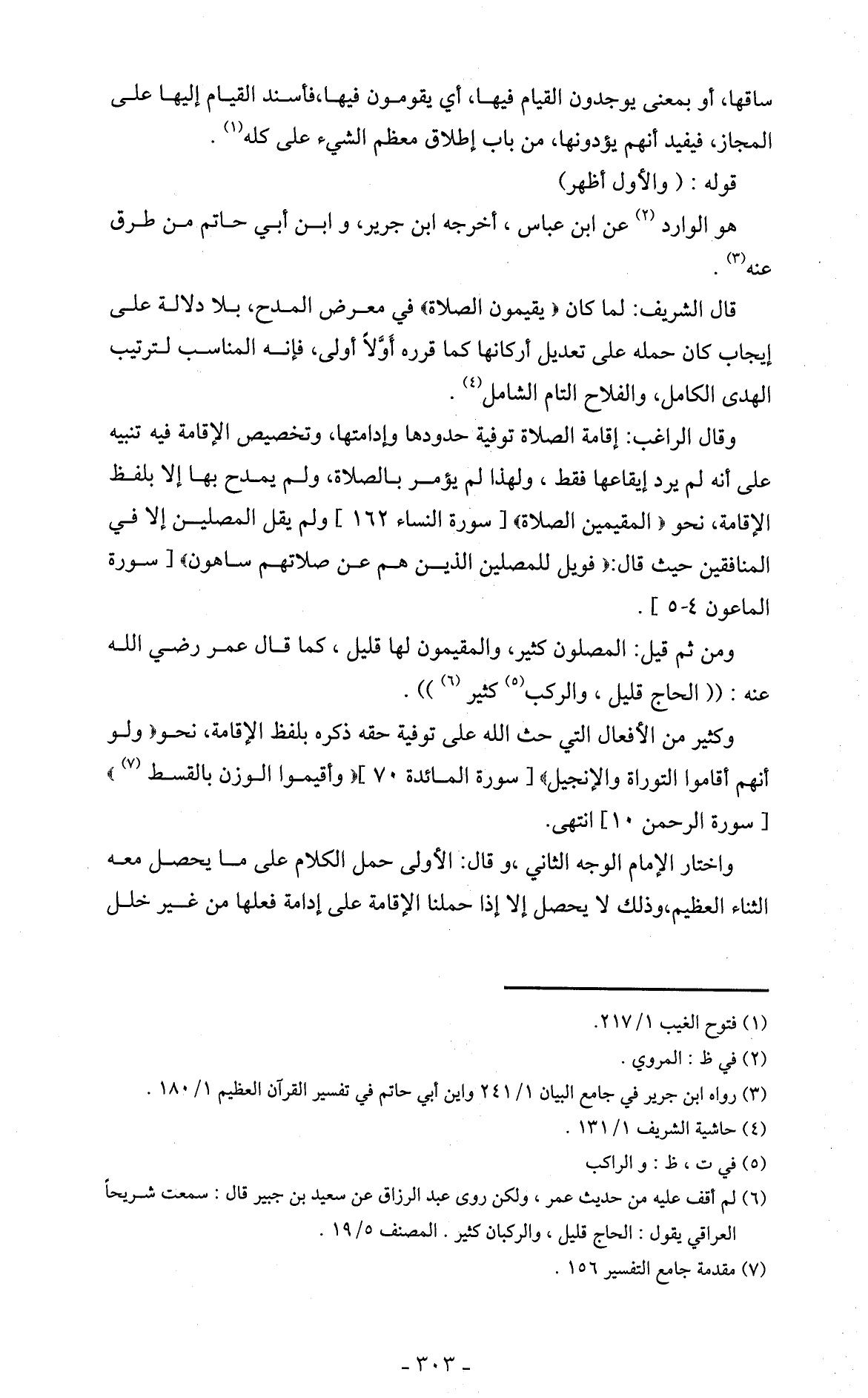ومن ثم قيل: المصلون كثير، والمقيمون لها قليل، كما قال عمر رضي الله عنه: " الحاج قليل، والركب (5) كثير (6) ".