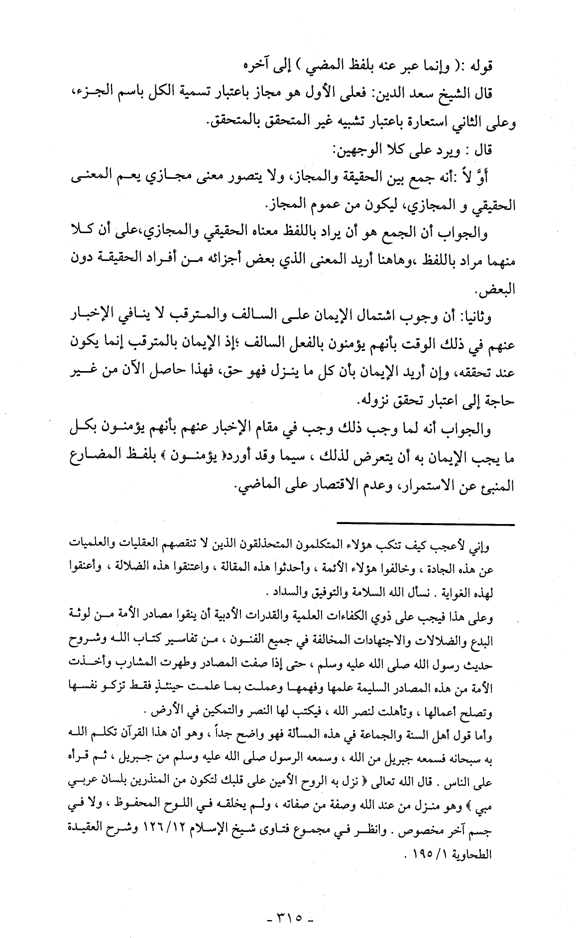 وثانيا: أن وجوب اشتمال الإيمان على السالف والمترقب لا ينافي الإخبار عنهم في ذلك الوقت بأنهم يؤمنون بالفعل السالف؛ إذ الإيمان بالمترقب إنما يكون عند تحققه، وإن أريد الإيمان بأن كل ما ينزل فهو حق، فهذا حاصل الآن من غير حاجة إلى اعتبار تحقق نزوله.