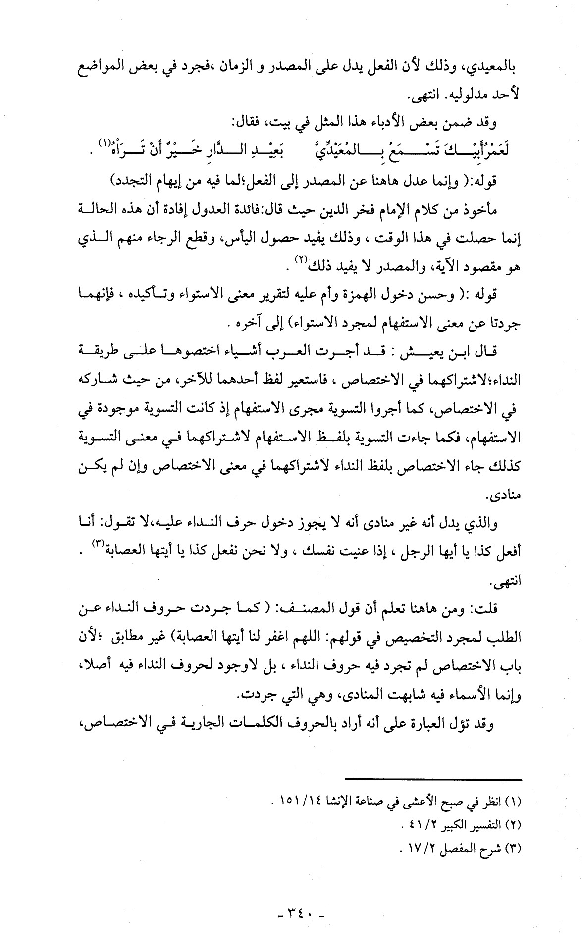 الطلب لمجرد التخصيص في قولهم: اللهم اغفر لنا أيتها العصابة) غير مطابق؛ لأن باب الاختصاص لم تجرد فيه حروف النداء، بل لا وجود لحروف النداء فيه أصلا، وإنما الأسماء فيه شابهت المنادى، وهي التي جردت.