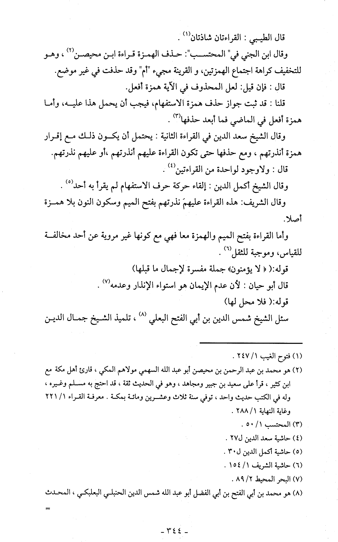 وقال الشيخ سعد الدين في القراءة الثانية: يحتمل أن يكون ذلك مع إقرار همزة أنذرتهم، ومع حذفها حتى تكون القراءة عليهم أنذرتهم، أو عليهم نذرتهم.