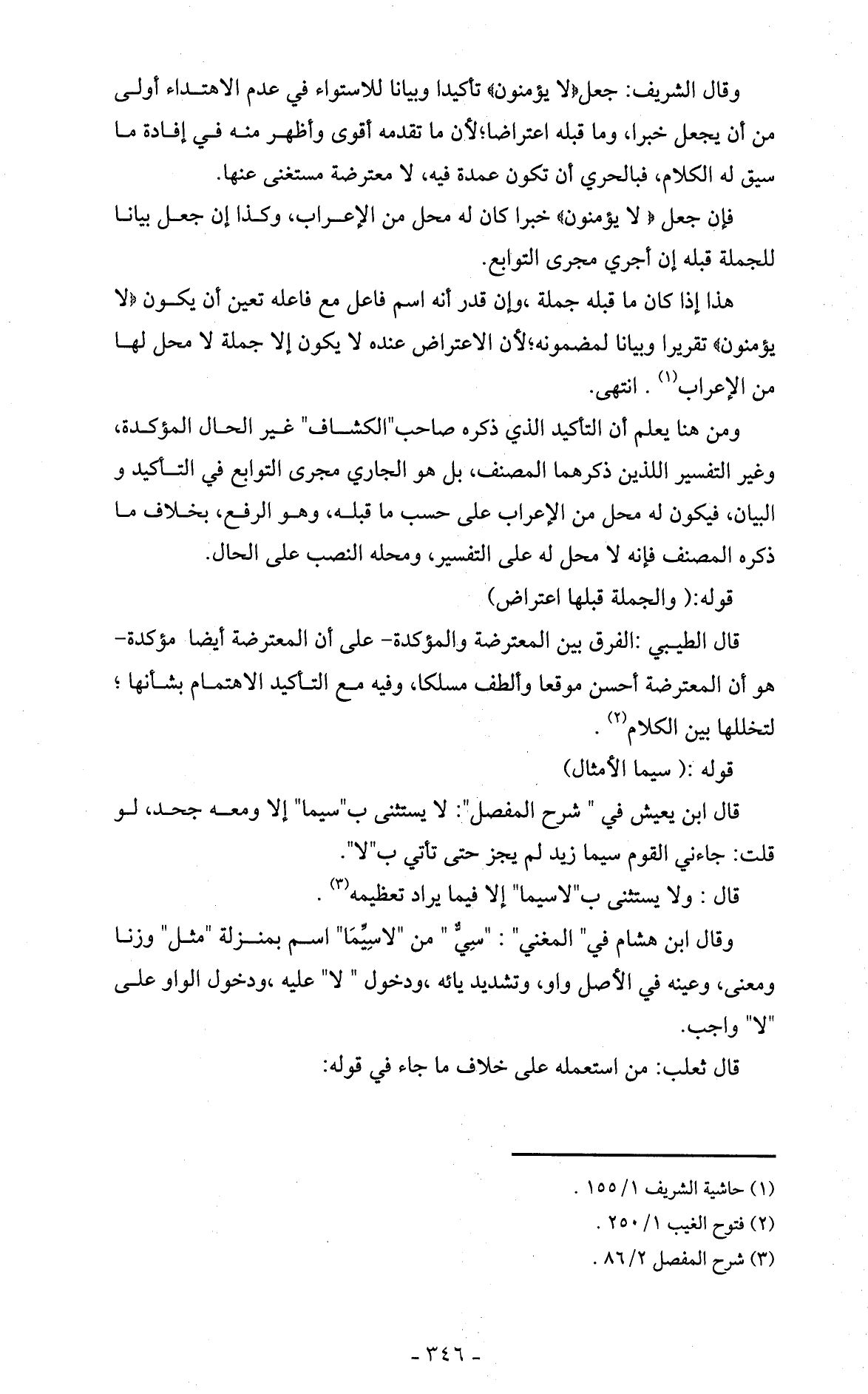 هذا إذا كان ما قبله جملة، وإن قدر أنه اسم فاعل مع فاعله تعين أن يكون (لا يؤمنون) تقريرا وبيانا لمضمونه؛ لأن الاعتراض عنده لا يكون إلا جملة لا محل لها من الإعراب (1). انتهى.