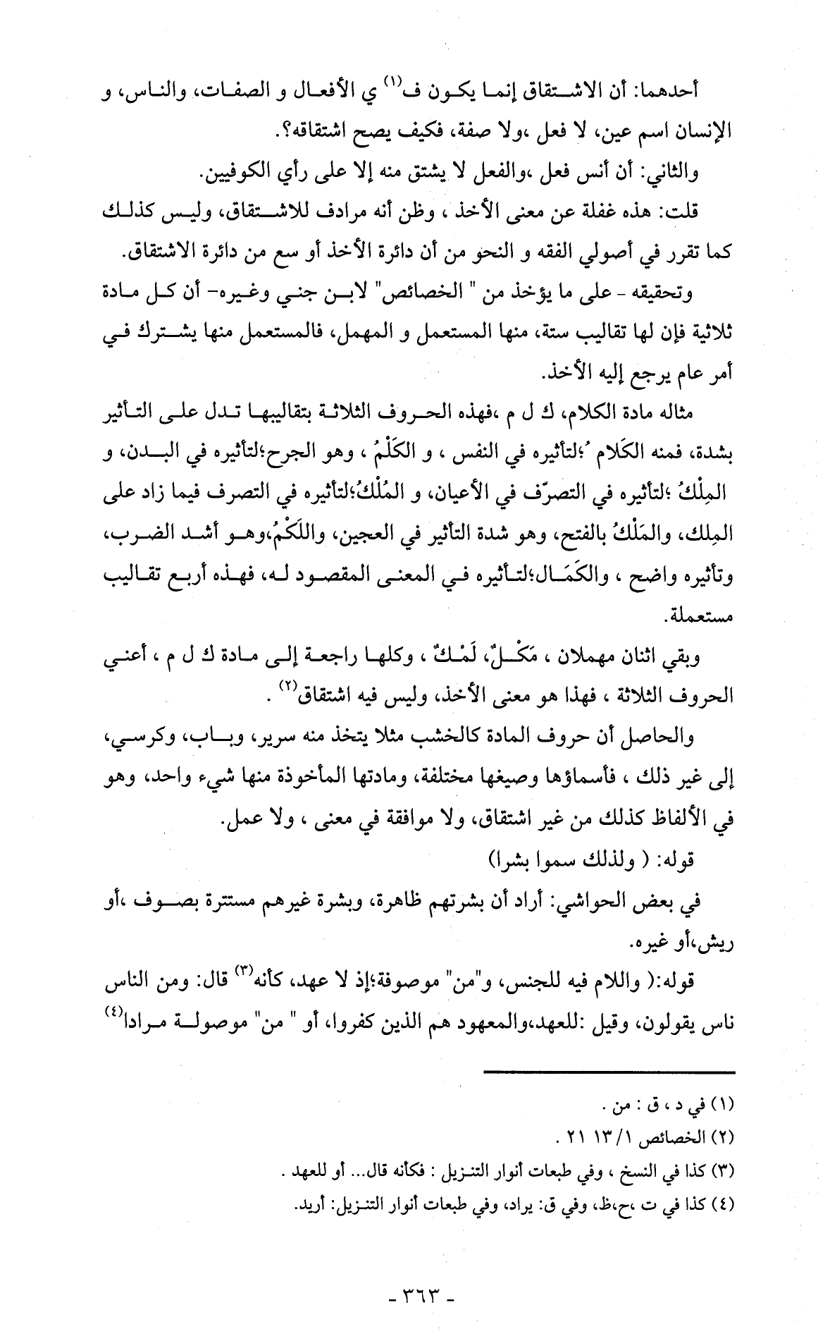 وبقي اثنان مهملان، مَكْلٌ، لَمْكٌ، وكلها راجعة إلى مادة ك ل م، أعني الحروف الثلاثة، فهذا هو معنى الأخذ، وليس فيه اشتقاق (2).