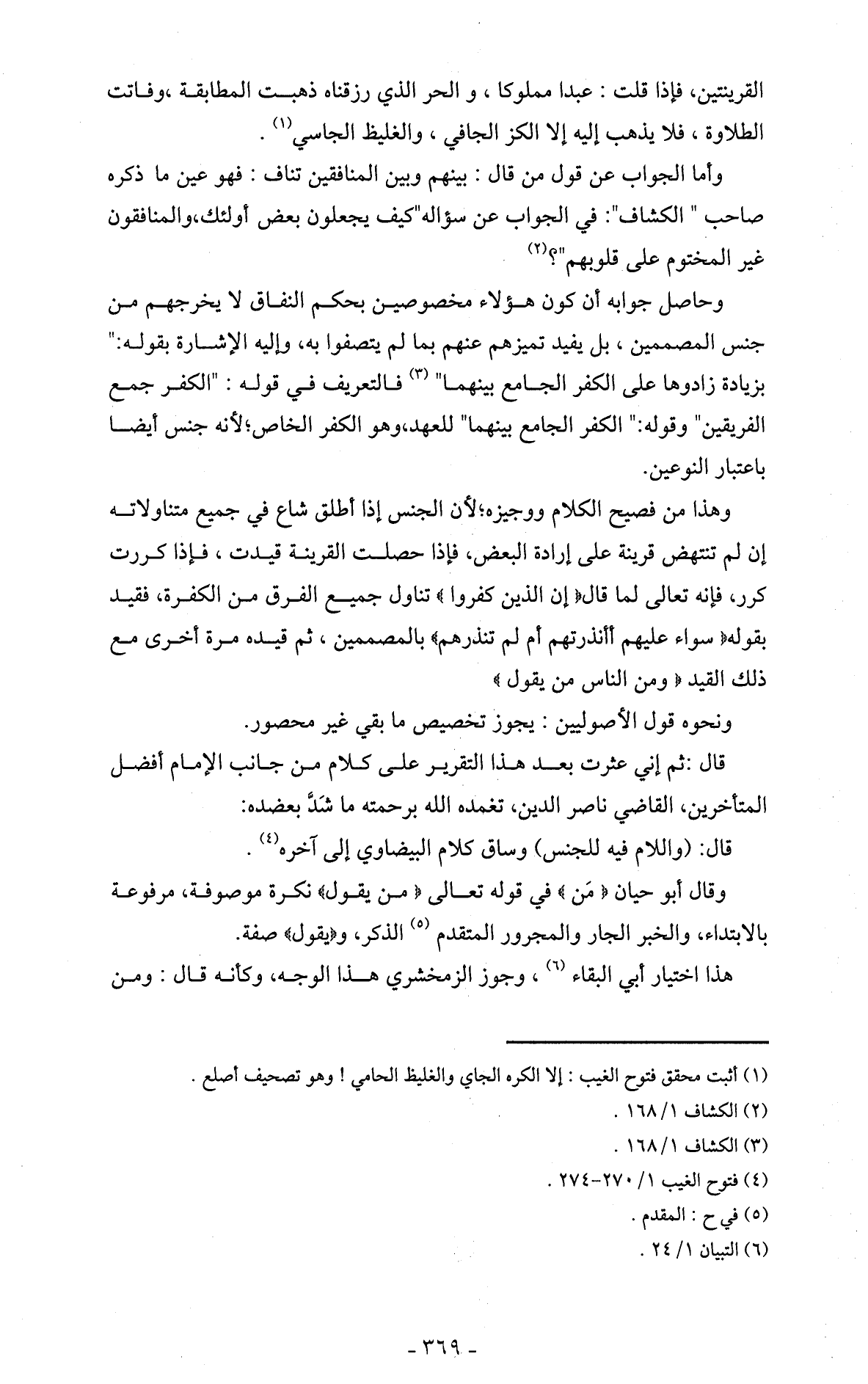 قال: (واللام فيه للجنس) وساق كلام البيضاوي إلى آخره (4).