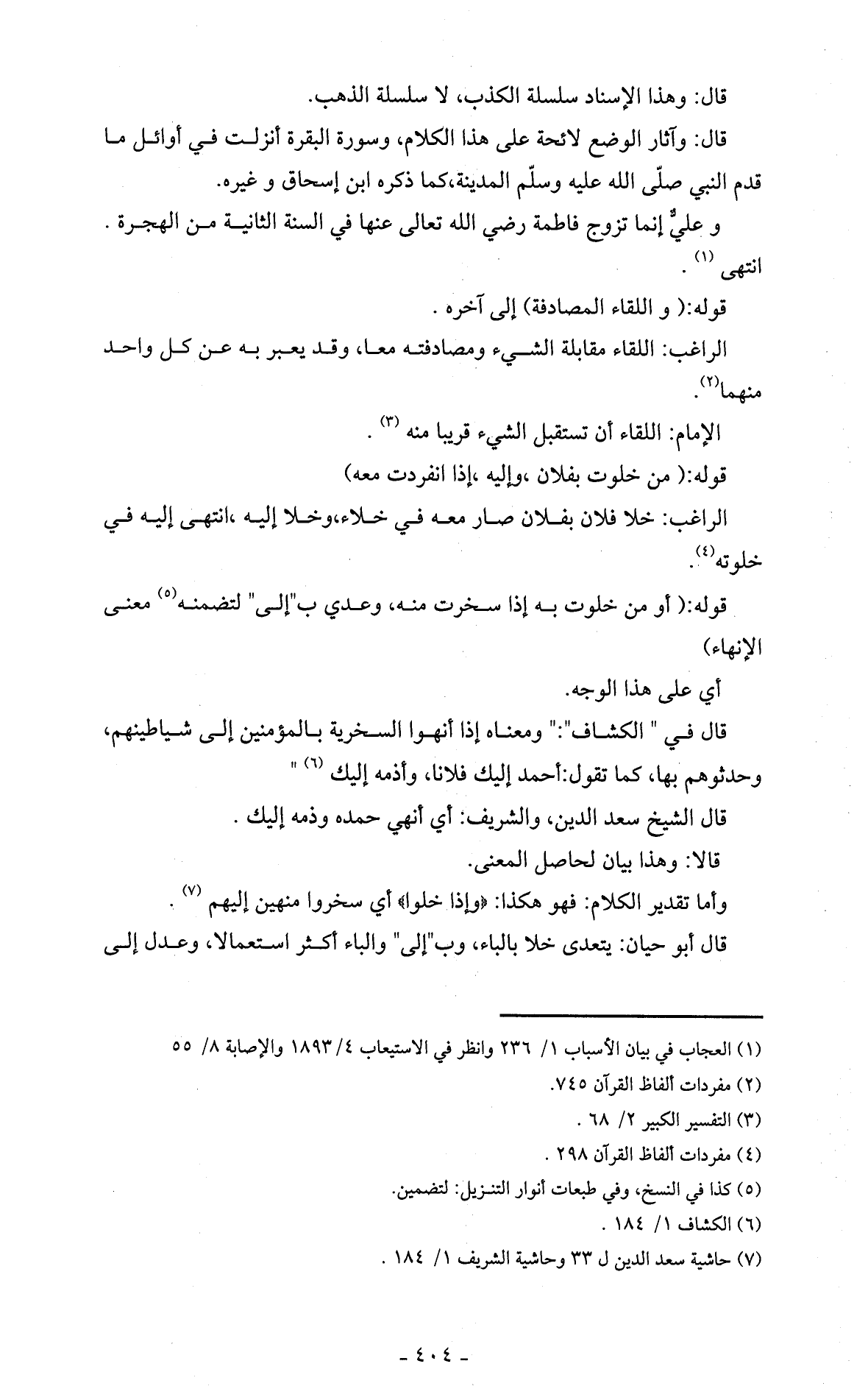قال في " الكشاف ": " ومعناه إذا أنهوا السخرية بالمؤمنين إلى شياطينهم، وحدثوهمْ بها، كما تقول: أحمد إليك فلانا، وأذمه إليك (6) "