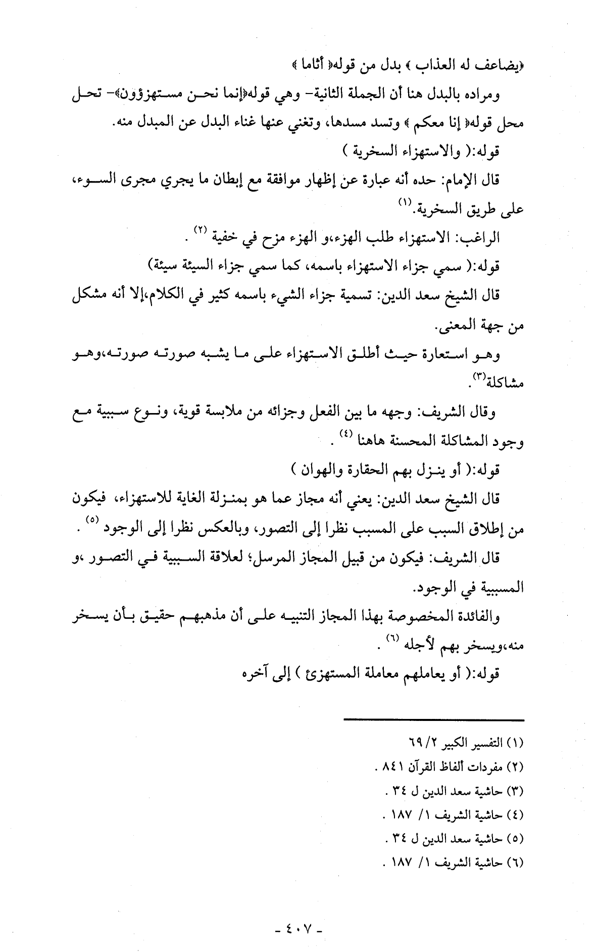 قال الشيخ سعد الدين: يعني أنه مجاز عما هو بمنزلة الغاية للاستهزاء، فيكون من إطلاق السبب على المسبب نظرا إلى التصور، وبالعكس نظرا إلى الوجود (5).