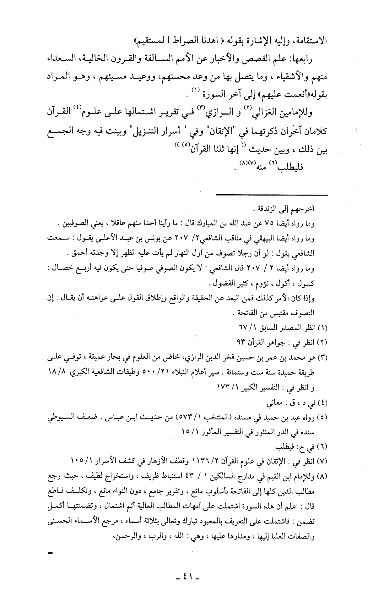 وللإمامين الغزالي (2) والرازي (3) في تقرير اشتمالها على علوم (4) القرآن كلامان آخَران ذكرتهما في " الإتقان " وفي " أسرار التنزيل " وبينت فيه وجه الجمع بين ذلك، وبين حديث " إنها ثلثا القزآن (5) "