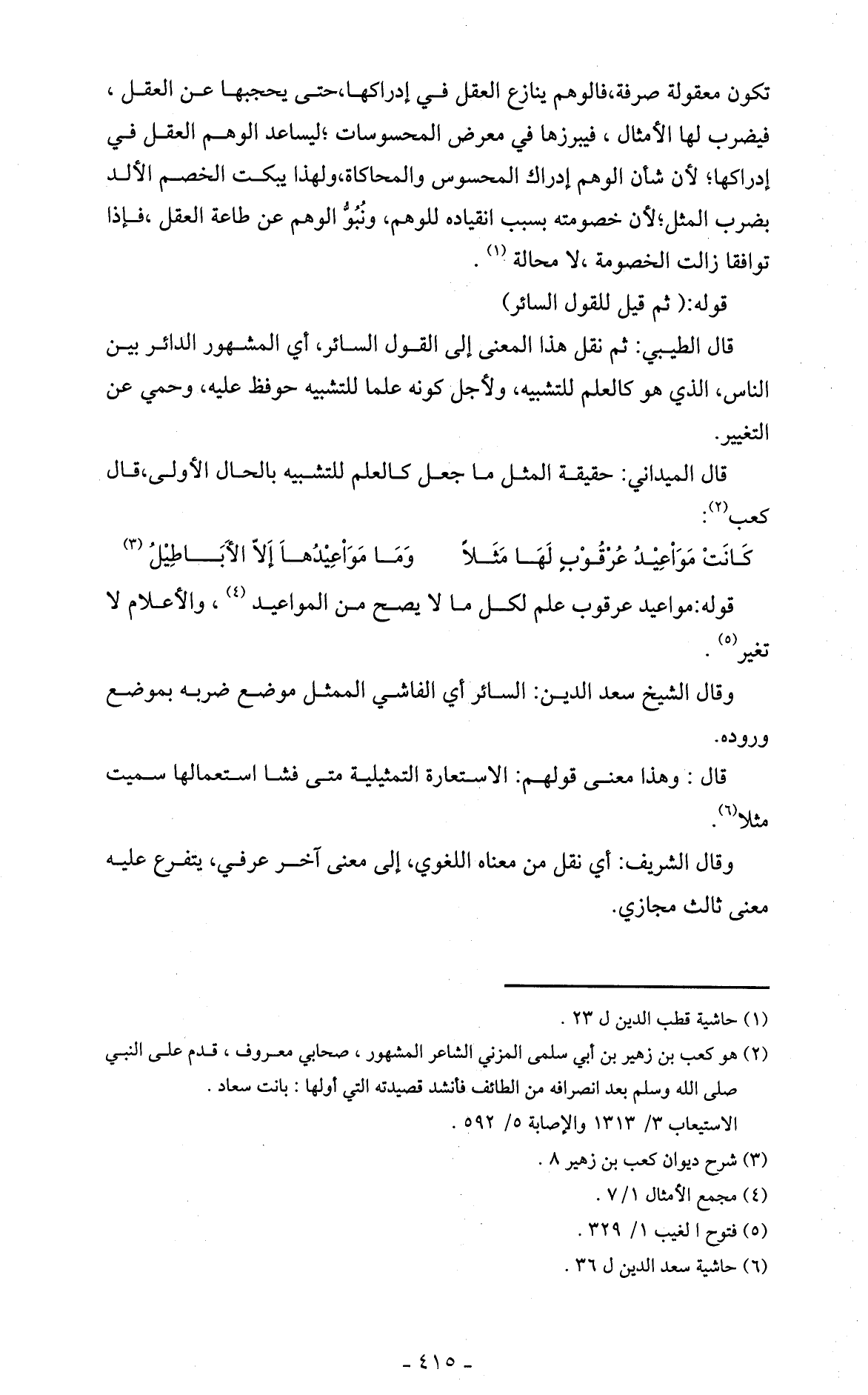 وقال الشيخ سعد الدين: السائر أي الفاشي الممثل موضع ضربه بموضع وروده.