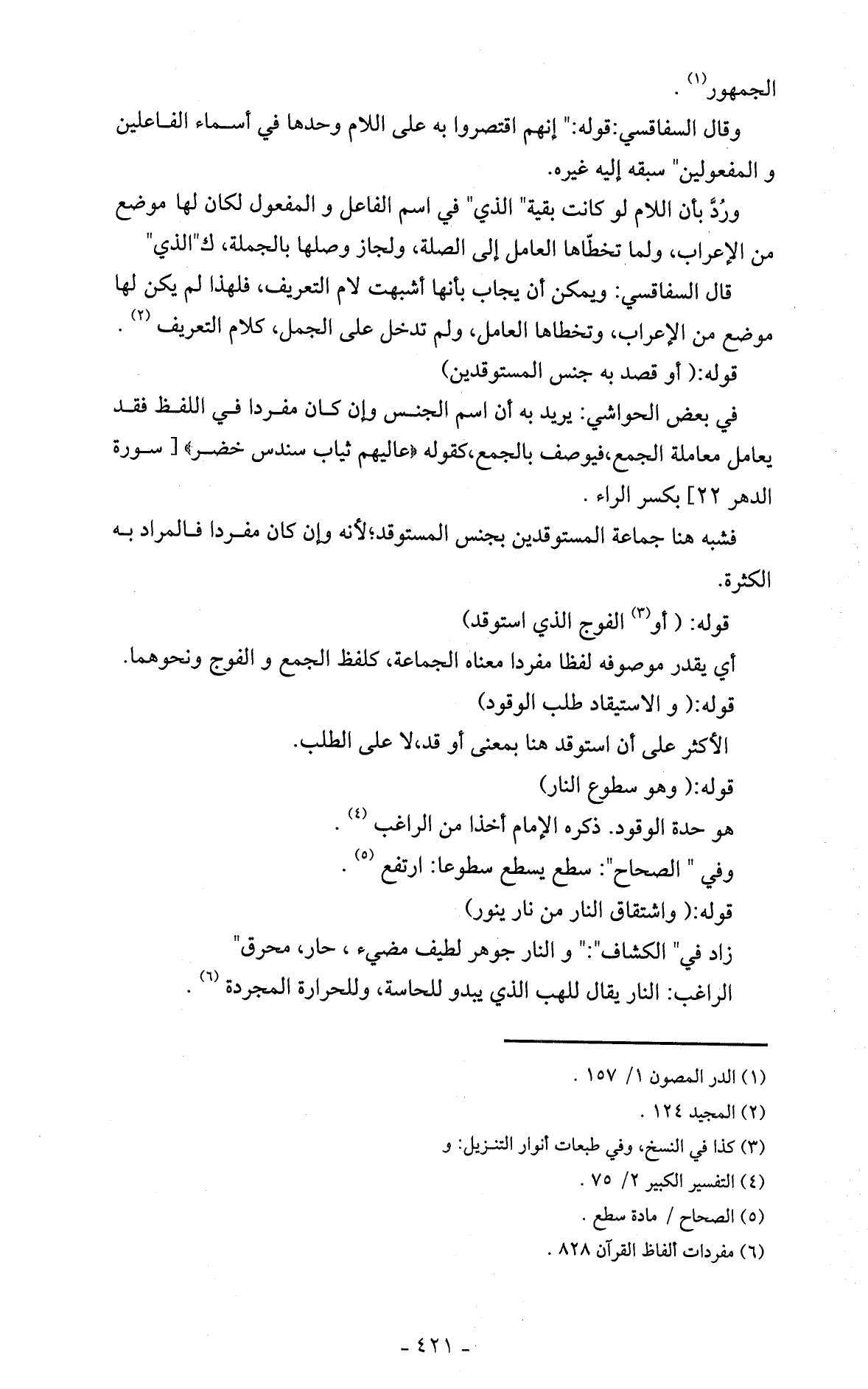 وقال السفاقسي: قوله: " إنهم اقتصروا به على اللام وحدها في أسماء الفاعلين والمفعولين " سبقه إليه غيره.