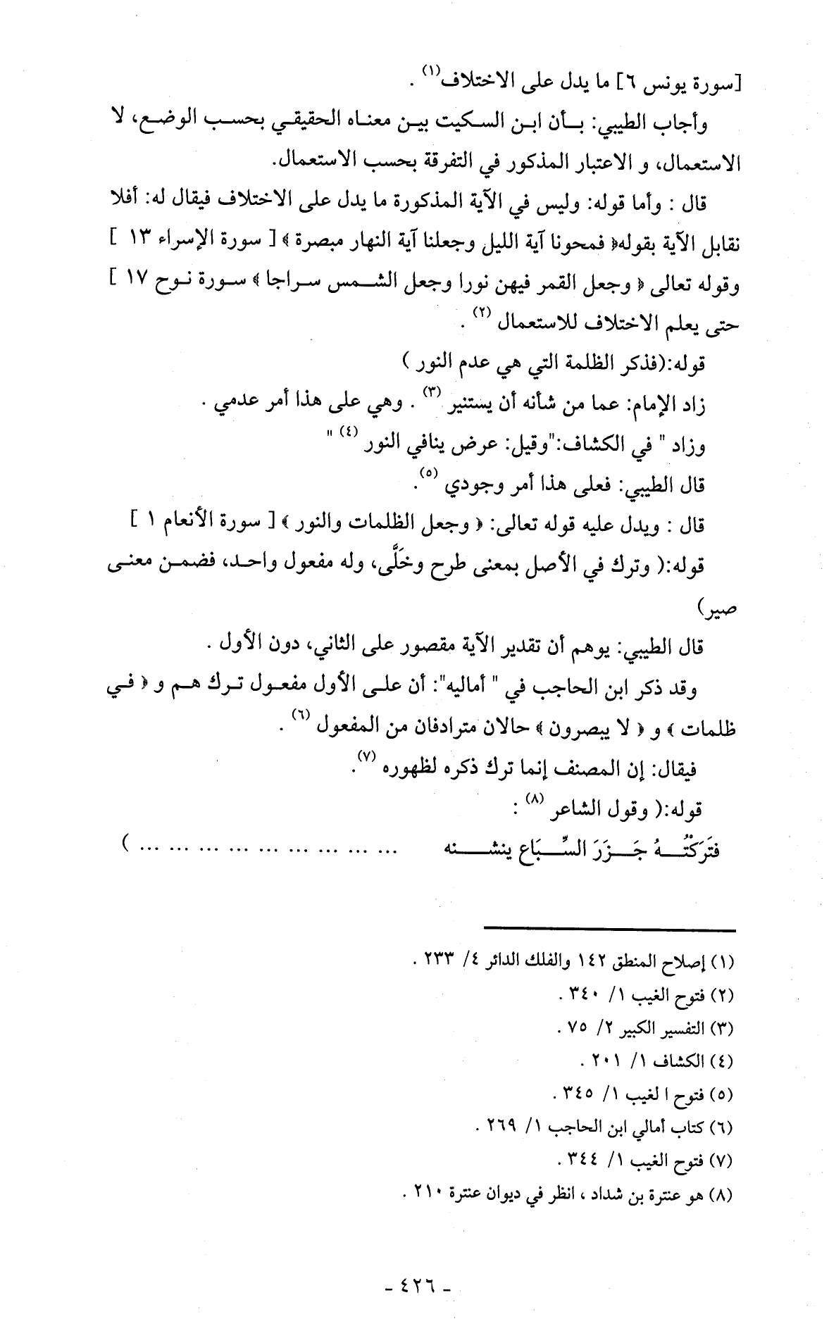 قال: ويدل عليه قوله تعالى: (وجعل الظلمات والنور) [سورة الأنعام 1]