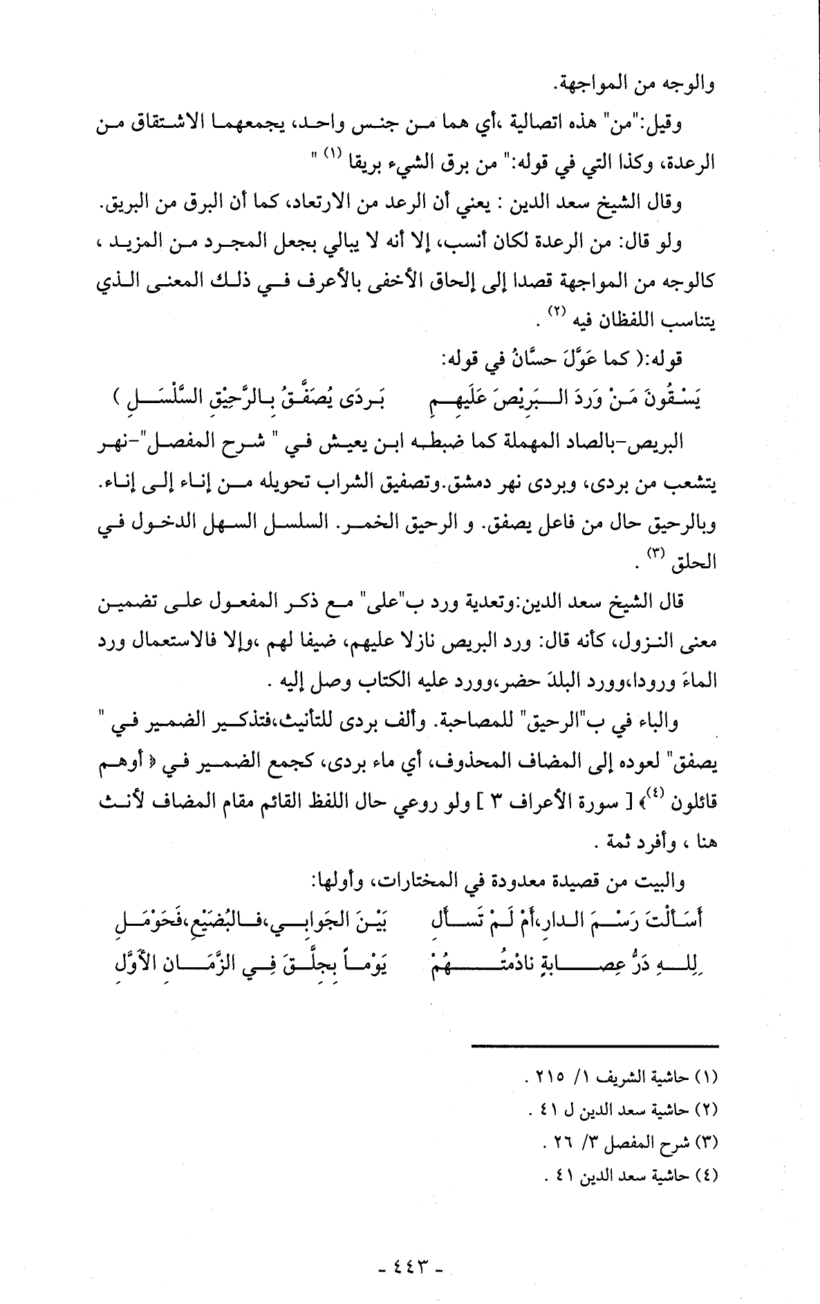 وقال الشيخ سعد الدين: يعني أن الرعد من الارتعاد، كما أن البرق من البريق.