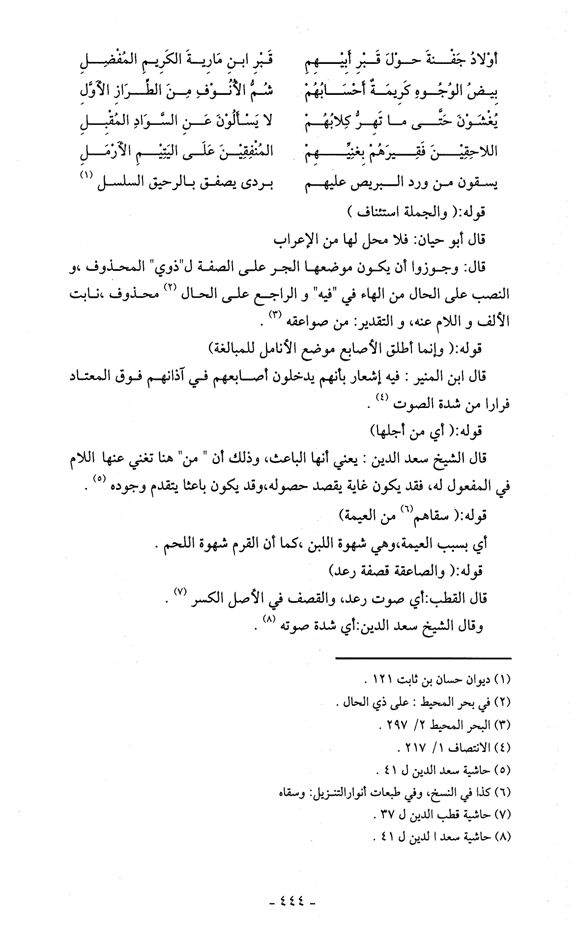 وقال الشيخ سعد الدين: أي شدة صوته (8).
