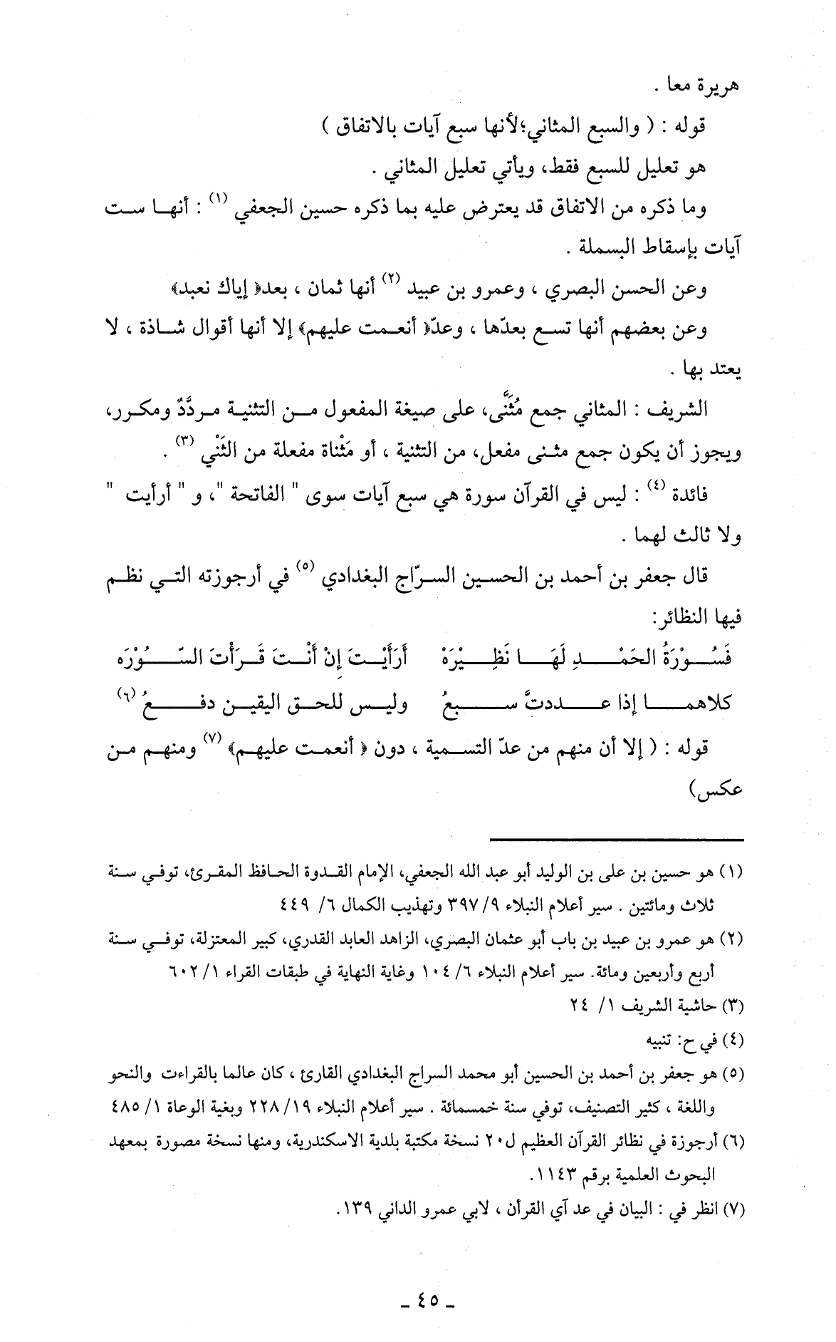 (7) انظر في: البيان في عد آي القرآن، لأبي عمرو الداني 139.