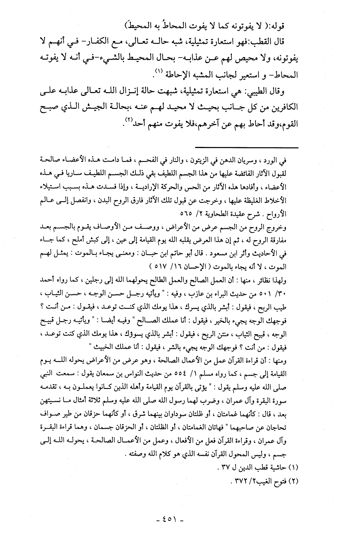 وقال الطيبي: هي استعارة تمثيلية، شبهت حالة إنزال الله تعالى عذابه على الكافرين من كل جانب بحيث لا محيد لهم عنه، بحالة الجيش الذي صبح القوم، وقد أحاط بهم عن آخرهم، فلا يفوت منهم أحد (2).