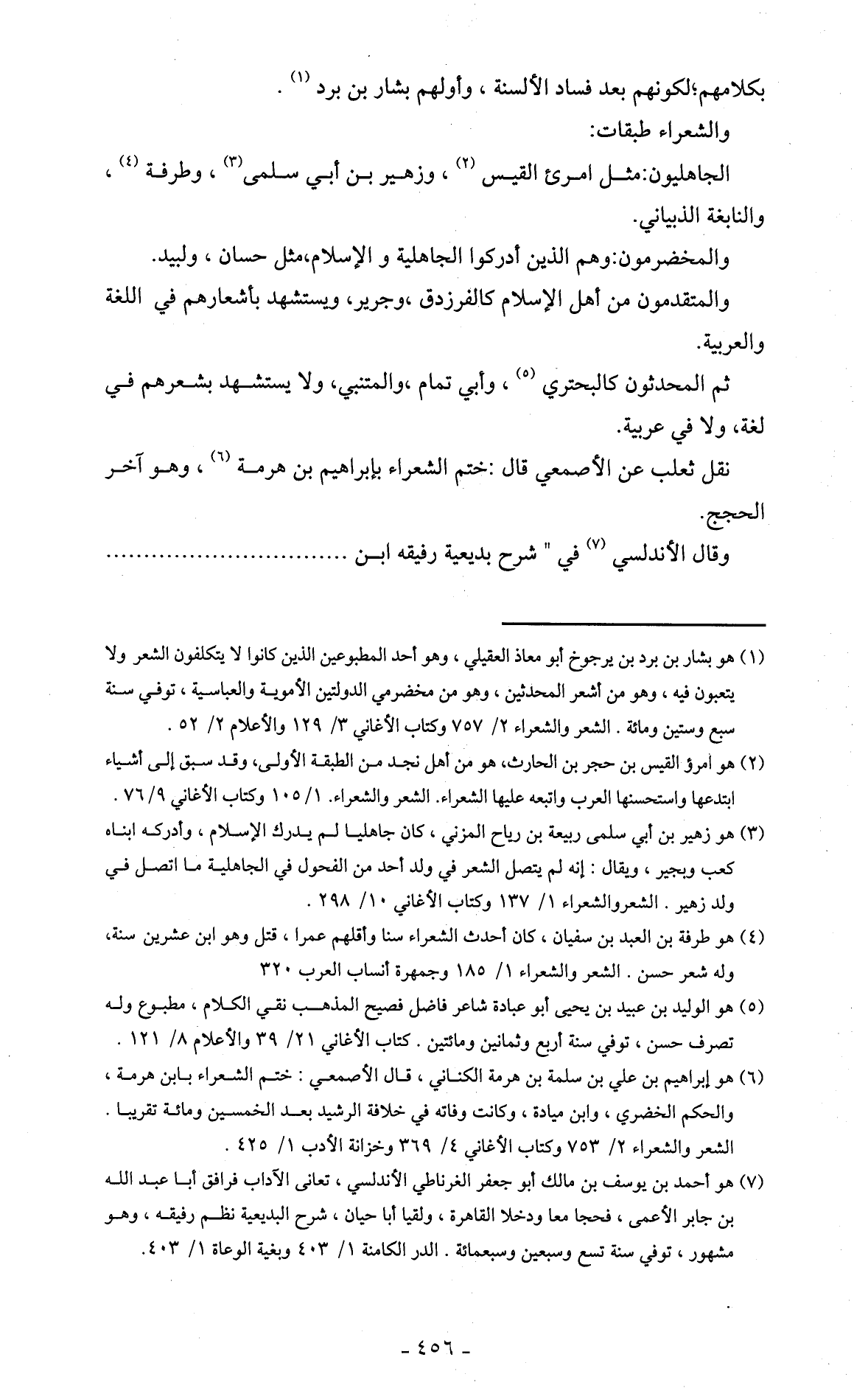 والمتقدمون من أهل الإسلام كالفرزدق، وجرير، ويستشهد بأشعارهم في اللغة والعربية.