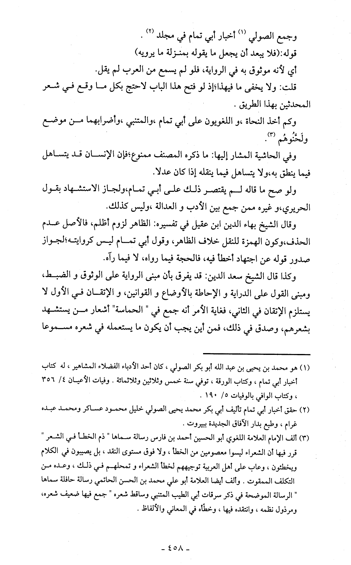 ولو صح ما قاله لم يقتصر ذلك على أبي تمام، ولجاز الاستشهاد بقول الحريري، وغيره ممن جمع بين الأدب والعدالة، وليس كذلك.