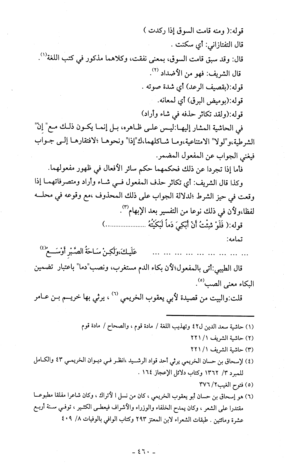 وكذا قال الشريف: أي تكاثر حذف المفعول في شاء وأراد ومتصرفاتهما إذا وقعت في حيز الشرط؛ لدلالة الجواب على ذلك المحذوف، مع وقوعه في محله لفظا، ولأن في ذلك نوعا من التفسير بعد الإبهام (3).