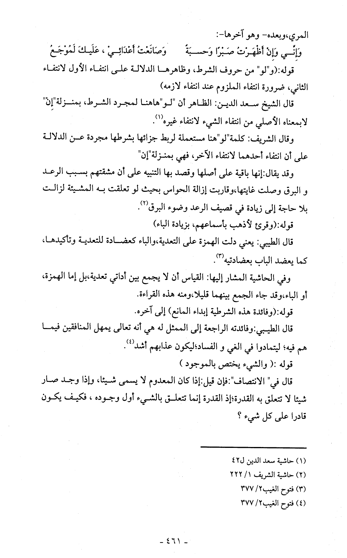 قال الشيخ سعد الدين: الظاهر أن " لو " هاهنا لمجرد الشرط، بمنزلة " إِنْ " لا بمعناه الأصلي من انتفاء الشيء لانتفاء غيره (1).