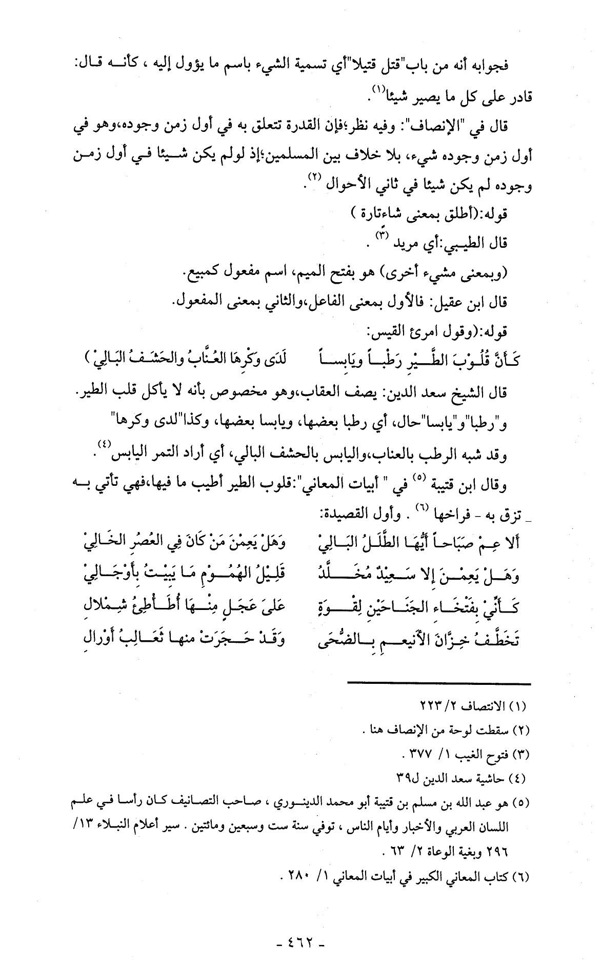 قال في " الإنصاف ": وفيه نظر، فإن القدرة تتعلق به في أول زمن وجوده، وهو في أول زمن وجوده شيء، بلا خلاف بين المسلمين؛ إذ لو لم يكن شيئا في أول زمن وجوده لم يكن شيئا في ثاني الأحوال (2).