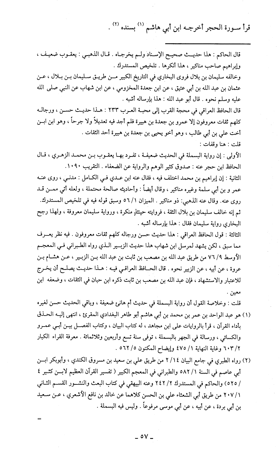 قرأ سورة الحجر أخرجه ابن أبي هاشم (1) بسنده (2).