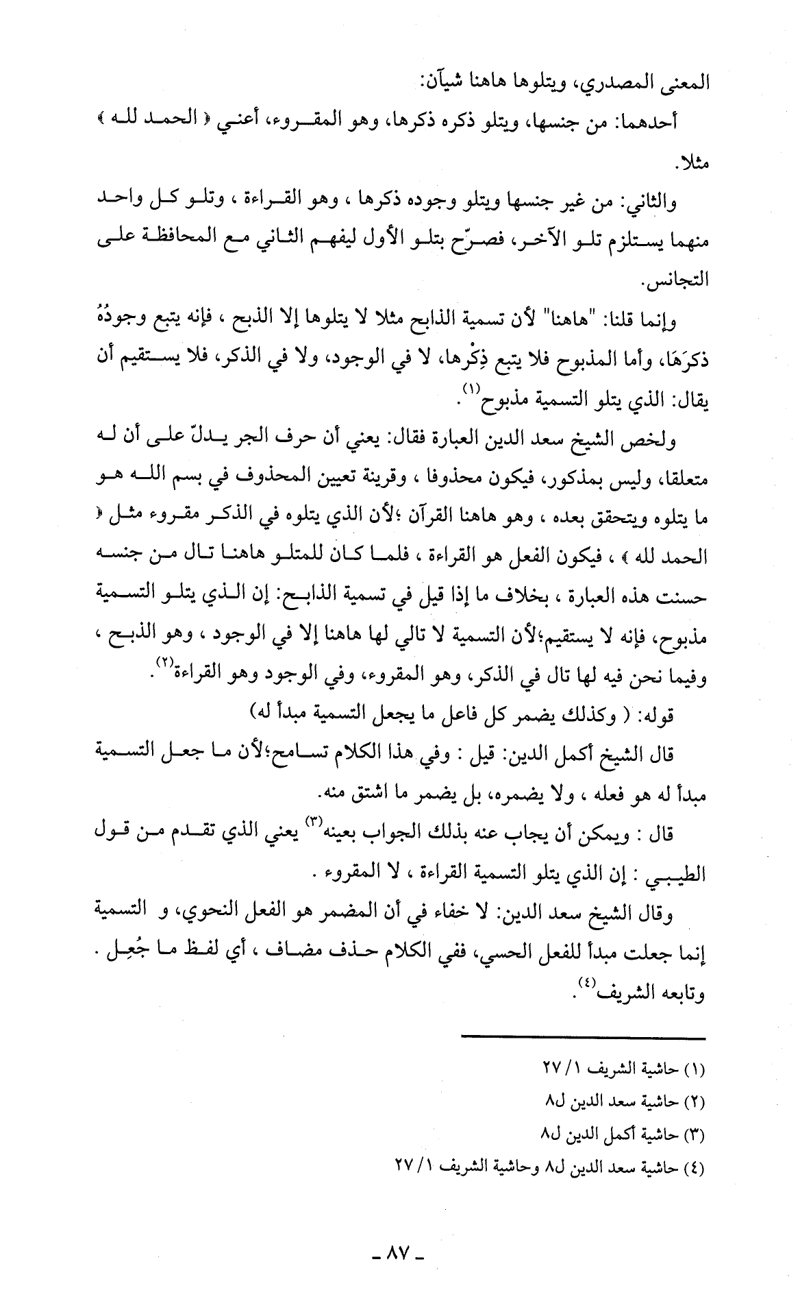 (4) حاشية سعد الدين ل8 وحاشية الشريف 1/ 27.