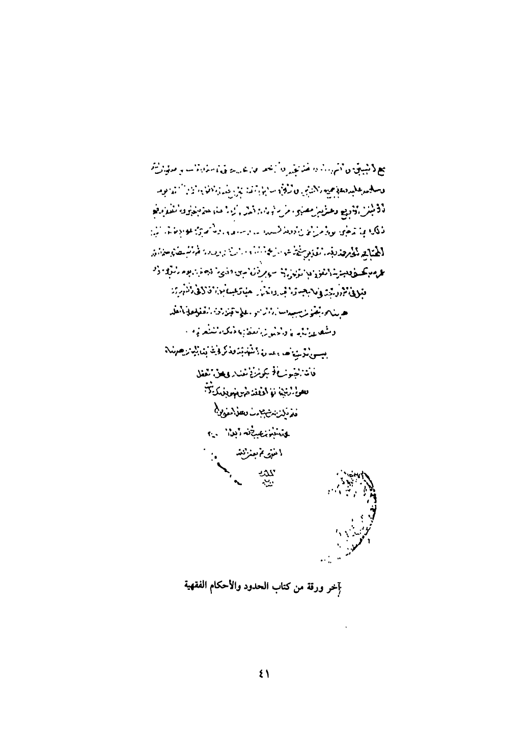 آخر ورقة من كتاب الحدود والاحكام الفقيهة