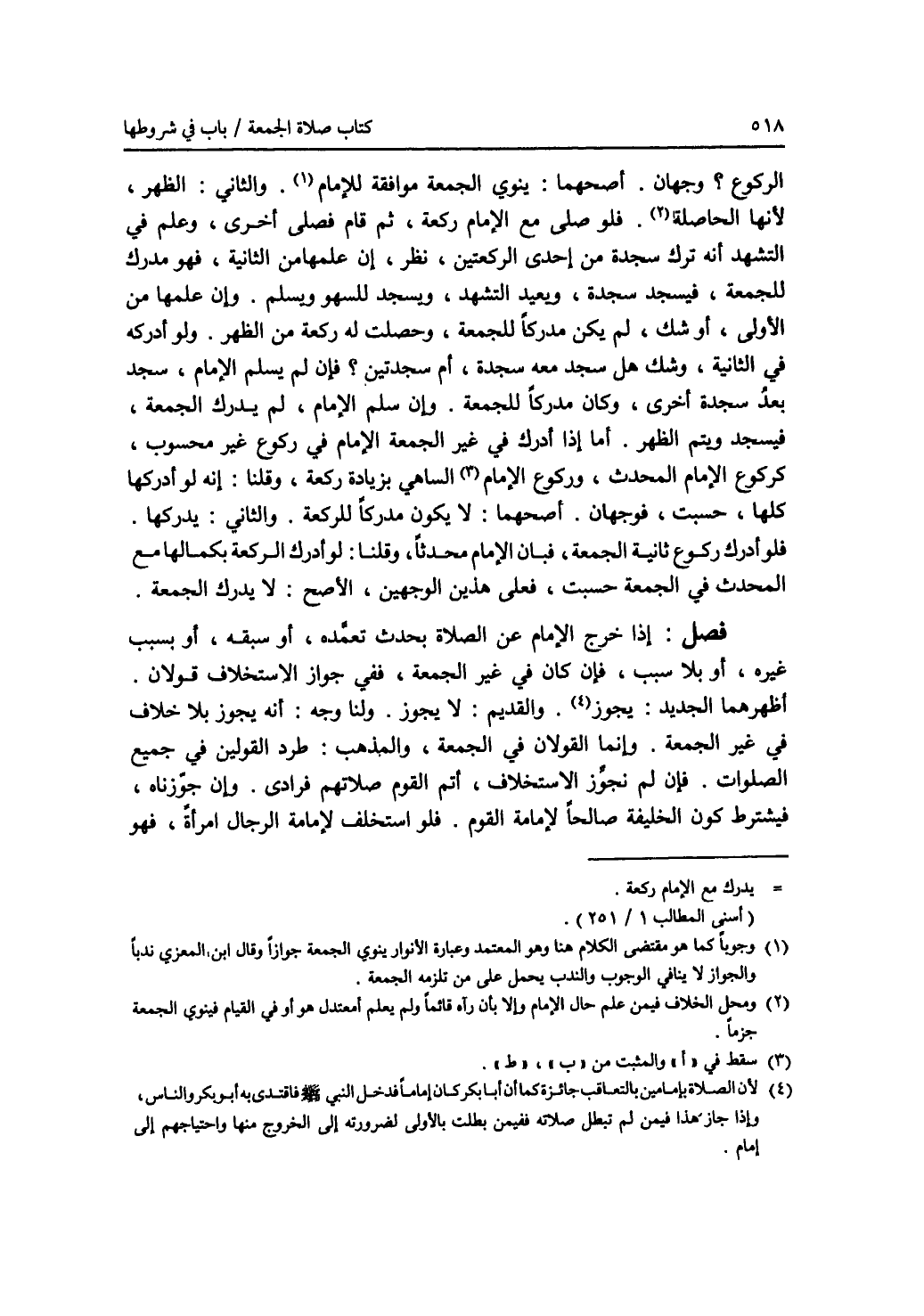 الركوع ؟ وجهان. أصحهما: ينوي الجمعة موافقة للامام (1). والثاني: الظهر، لانها الحاصلة (2). فلو صلى مع الامام ركعة، ثم قام فصلى أخرى، وعلم في التشهد أنه ترك سجدة من إحدى الركعتين، نظر، إن علمها من الثانية، فهو مدرك للجمعة، فيسجد سجدة، ويعيد التشهد، ويسجد للسهو ويسلم. وإن علمها من الاولى، أو شك، لم يكن مدركا للجمعة، وحصلت له ركعة من الظهر، ولو أدركه في الثانية، وشك هل سجد معه سجدة، أم سجدتين ؟ فإن لم يسلم الامام، سجد بعد سجدة أخرى، وكان مدركا للجمعة. وإن سلم الامام، لم يدرك الجمعة، فيسجد ويتم الظهر. أما ذا أدرك في غير الجمعة الامام في ركوع غير محسوب، كركوع الامام المحدث، وركوع الامام (3) الساهي بزيادة ركعة، وقلنا: إنه لو أدركها كلها، حسبت، فوجهان. أصحهما: لا يكون مدركا للركعة. والثاني: يدركها. فلو أدرك ركوع ثانية الجمعة، فبان الامام محدثا، وقلنا: لو أدرك الركعة بكمالها مع المحدث في الجمعة حسبت، فعلى هذين الوجهين، الاصح: لا يدرك الجمعة. فصل: إذا خرج الامام عن الصلاة بحدث تعمده، أو سبقه، أو بسبب غيره، أو بلا سبب، فإن كان في غير الجمعة، ففي جواز الاستخلاف قولان. أظهرهما الجديد: يجوز (4). والقديم: لا يجوز. ولنا وجه: أنه يجوز بلا خلاف في غير الجمعة. وإنما القولان في الجمعة، والمذهب: طرد القولين في جميع الصلوات. فإن لم نجوز الاستخلاف، أتم القوم صلاتهم فرادى. وإن جوزناه، فيشترط كون الخليفة صالحا لامامة القوم. فلو استخلف لامامة الرجال امرأة، فهو