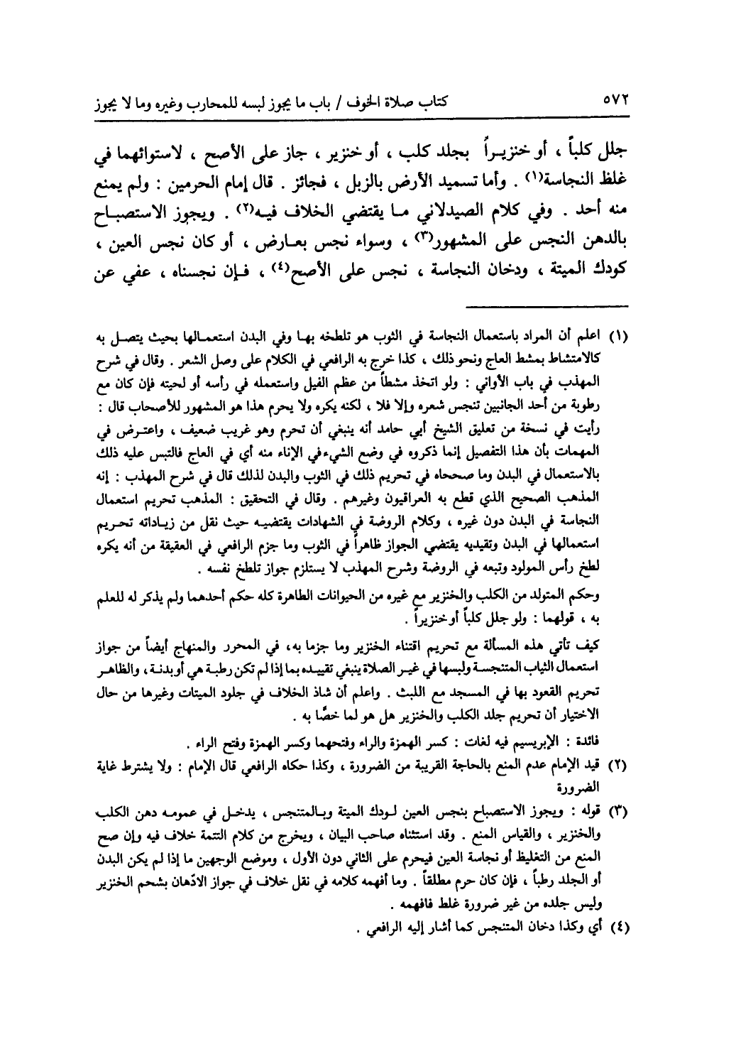 جلل كلبا، أو خنزيرا. بجلد كلب، أو خنزير، جاز على الاصح، لاستوائهما في غلظ النجاسة (1). وأما تسميد الارض بالزبل، فجائز. قال إمام الحرمين: ولم يمنع منه أحد. وفي كلام الصيدلاني ما يقتضي الخلاف فيه (2) ويجوز الاستصباح بالدهن النجس على المشهور (3)، وسواء نجس بعارض، أو كان نجس العين، كودك الميتة، ودخان النجاسة، نجس على الاصح (4)، فإن نجسناه عفي عن