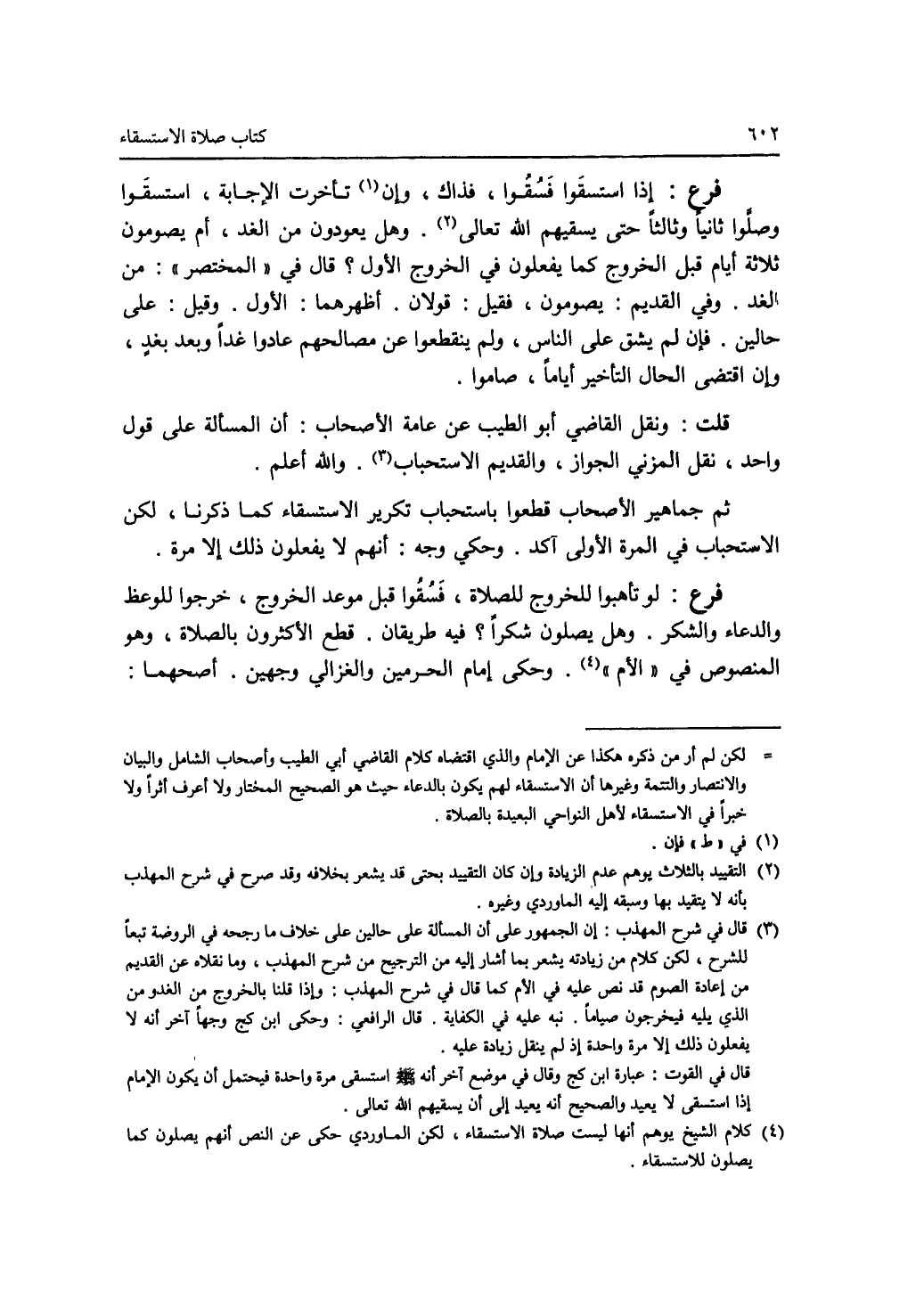 فرع: إذا استسقوا فسقوا، فذاك، وإن (1) تأخرت الاجابة، استسقوا وصلوا ثانيا وثالثا حتى يسقيهم الله تعالى (2). وهل يعودون من الغد، أم يصومون ثلاثة أيام قبل الخروج كما يفعلون في الخروج الاول ؟ قال في (المختصر): من الغد. وفي القديم: يصومون، فقيل: قولان. أظهرهما: الاول. وقيل: على حالين. فإن لم يشق على الناس، ولم ينقطعوا عن مصالحهم عادوا غدا وبعد بغد، وإن اقتضى الحال التأخير أياما، صاموا. قلت: ونقل القاضي أبو الطيب عن عامة الاصحاب: أن المسألة على قول واحد، نقل المزني الجواز، والقديم الاستحباب (3). والله أعلم. ثم جماهير الاصحاب قطعوا باستحباب تكرير الاستسقاء كما ذكرنا، لكن الاستحباب في المرة الاولى آكد. وحكي وجه: أنهم لا يفعلون ذلك إلا مرة. فرع: لو تأهبوا للخروج للصلاة، فسقوا قبل موعد الخروج، خرجوا للوعظ والدعاء والشكر. وهل يصلون شكرا ؟ فيه طريقان. قطع الاكثرون بالصلاة، وهو المنصوص في (الام) (4). وحكى إمام الحرمين والغزالي وجهين. أصحهما: