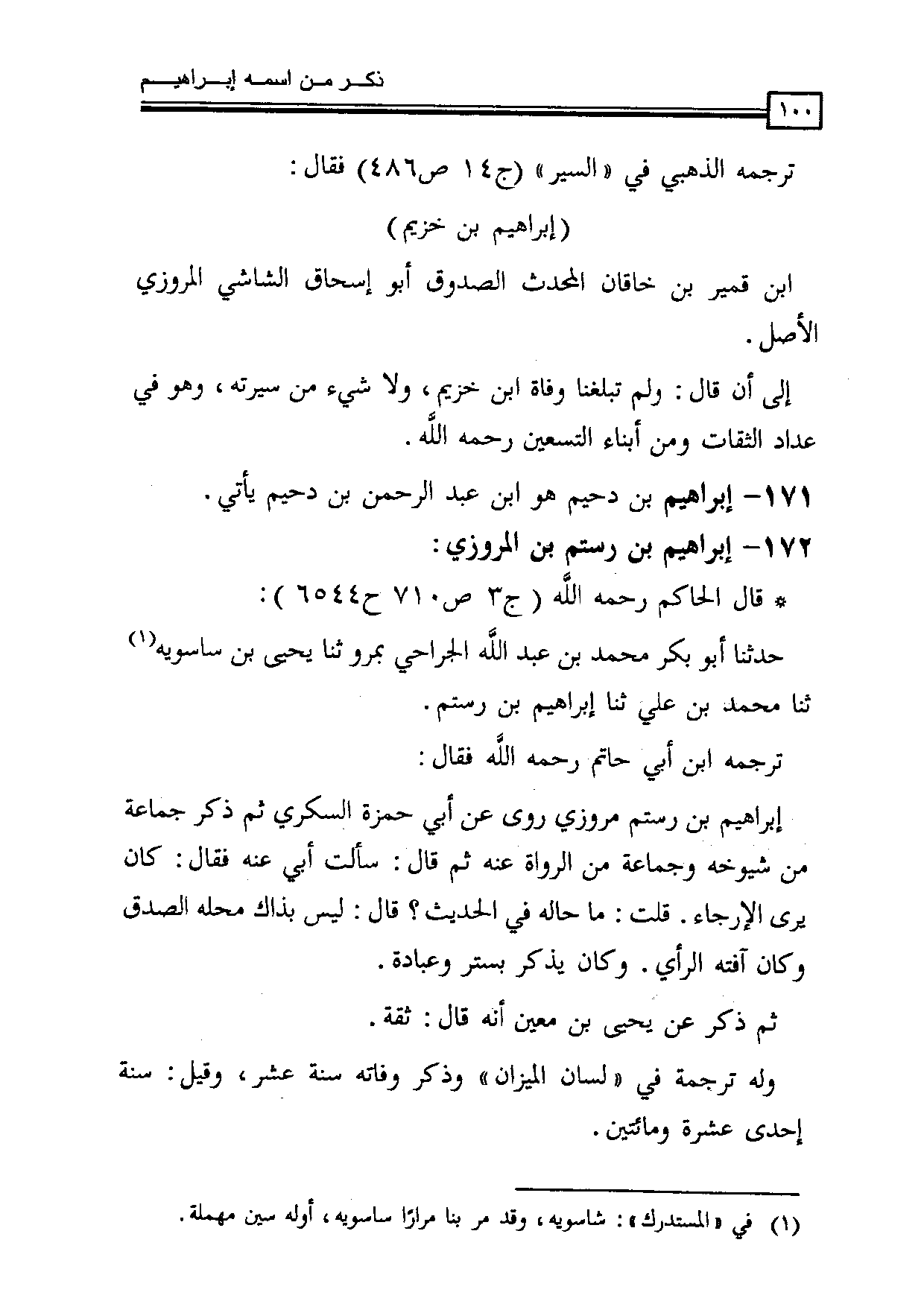 حدثنا أبو بكر محمد بن عبد الله الجراحي بمرو، ثنا يحيى بن ساسويه، ثنا محمد بن علي، ثنا إبراهيم بن رستم.