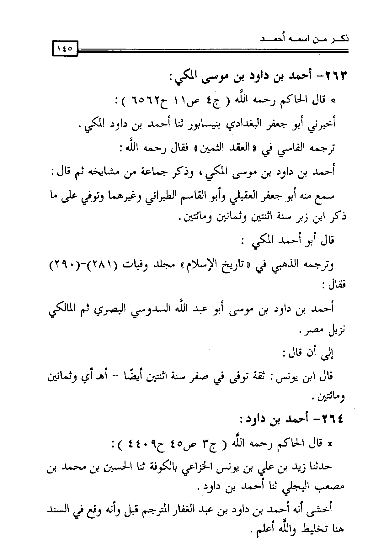 أحمد بن داود بن موسى المكي، وذكر جماعة من مشايخه ثم قال: سمع منه أبو جعفر العقيلي وأبو القاسم الطبراني وغيرهما وتوفي على ما ذكر ابن زبر سنة اثنتين وثمانين ومائتين.