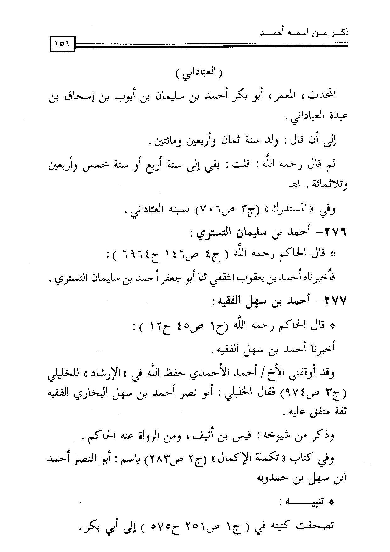 * قال الحاكم رحمه الله: (ج 4 ص 146 ح 6964): فأخبرناه أحمد بن يعقوب الثقفي، ثنا أبو جعفر أحمد بن سليمان التستري.
