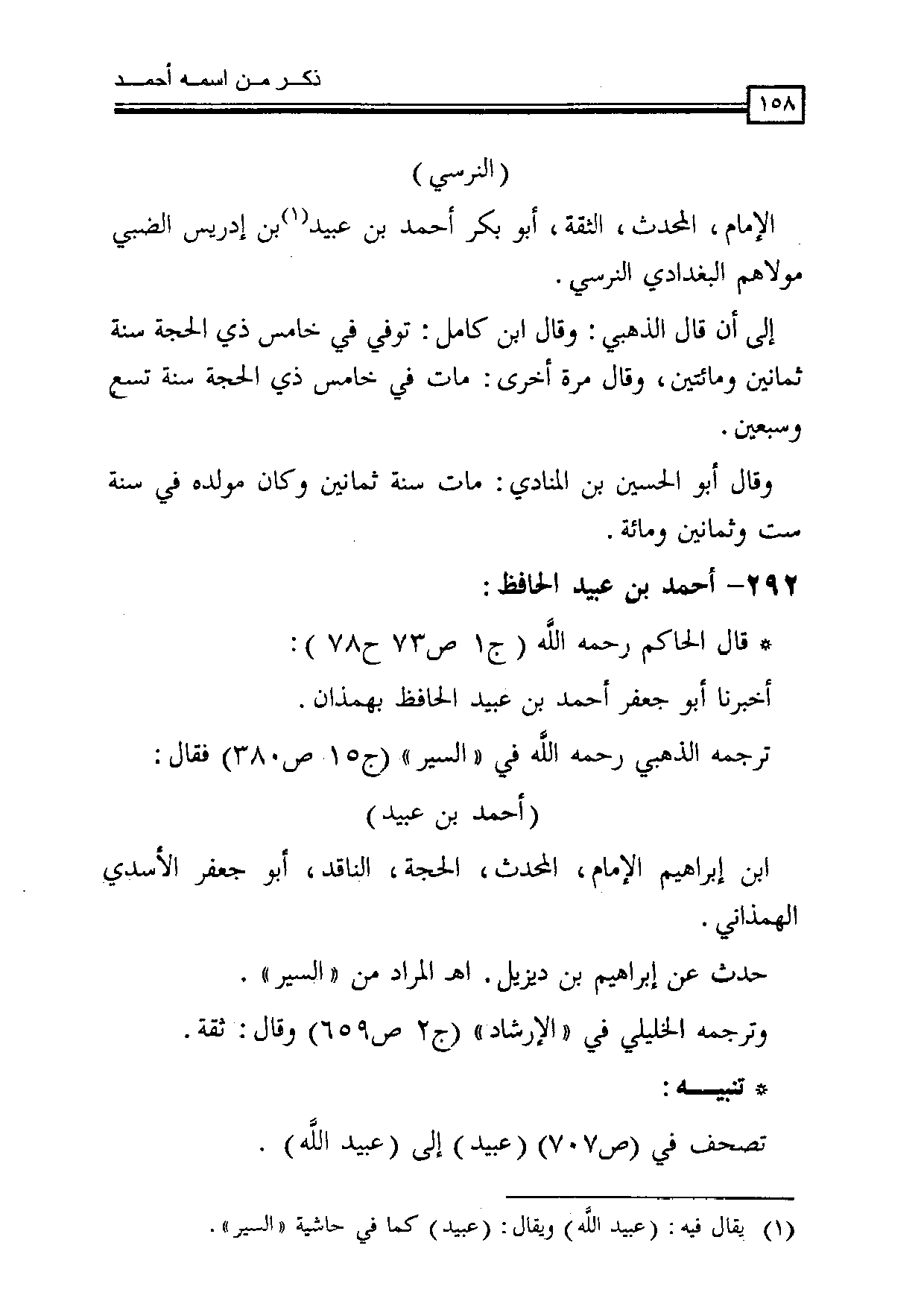الإمام، المحدث، الثقة، أبو بكر أحمد بن عبيد بن إدريس الضبي مولاهم البغدادي النرسي.