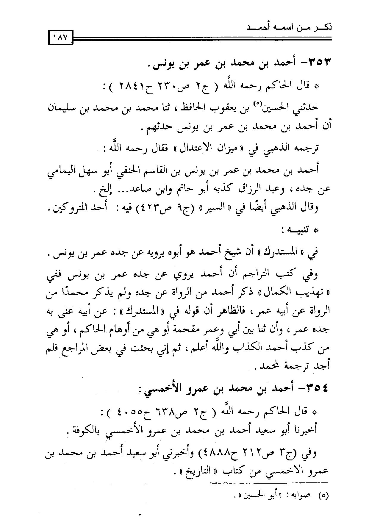 وفي (ج 3 ص 212 ح 4888) وأخبرني أبو سعيد أحمد بن محمد بن عمرو الأخمسي من كتاب " التاريخ ".