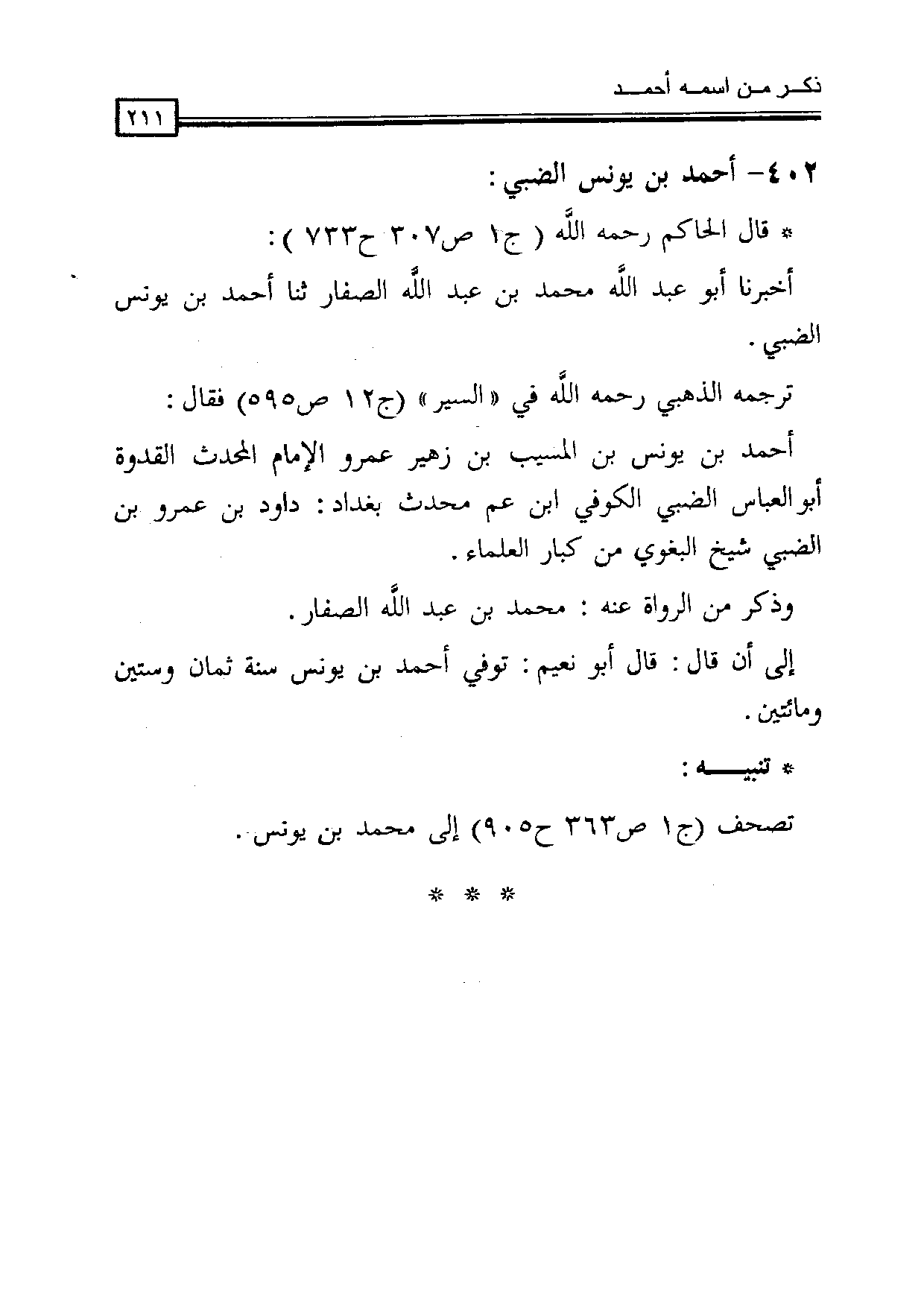 أخبرنا أبو عبد الله محمد بن عبد الله الصفار، ثنا أحمد بن يونس الضبي.