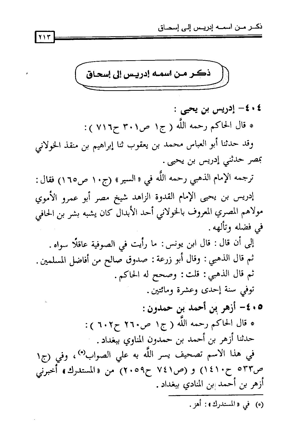 في هذا الاسم تصحيف يسر الله به علي الصواب، وفي (ج 1 ص 533 ح 1410)، و (ص 741 ح 2059) من " المستدرك " أخبرني أزهر بن أحمد بن المنادي ببغداد.