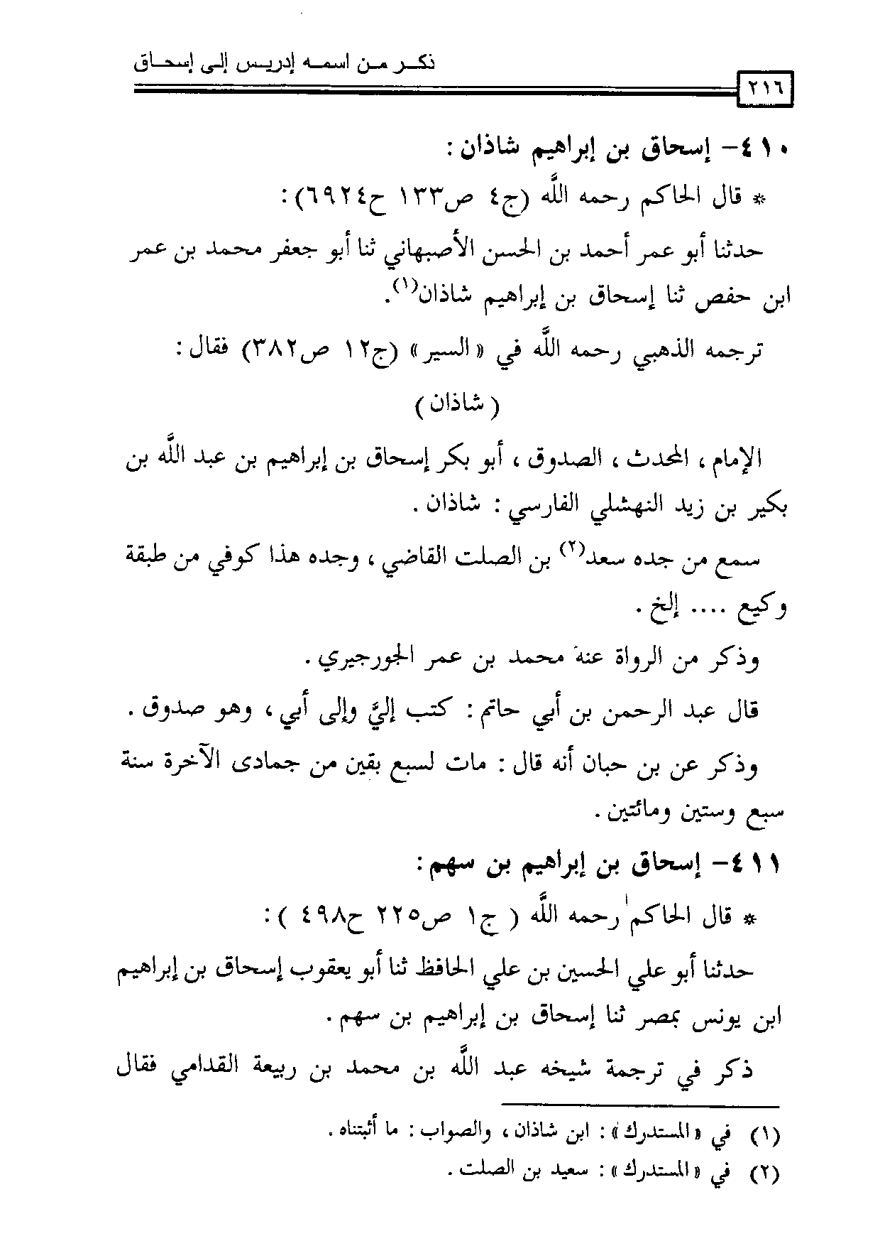 حدثنا أبو عمر أحمد بن الحسن الأصبهاني، ثنا أبو جعفر محمد بن عمر بن حفص، ثنا إسحاق بن إبراهيم شاذان.