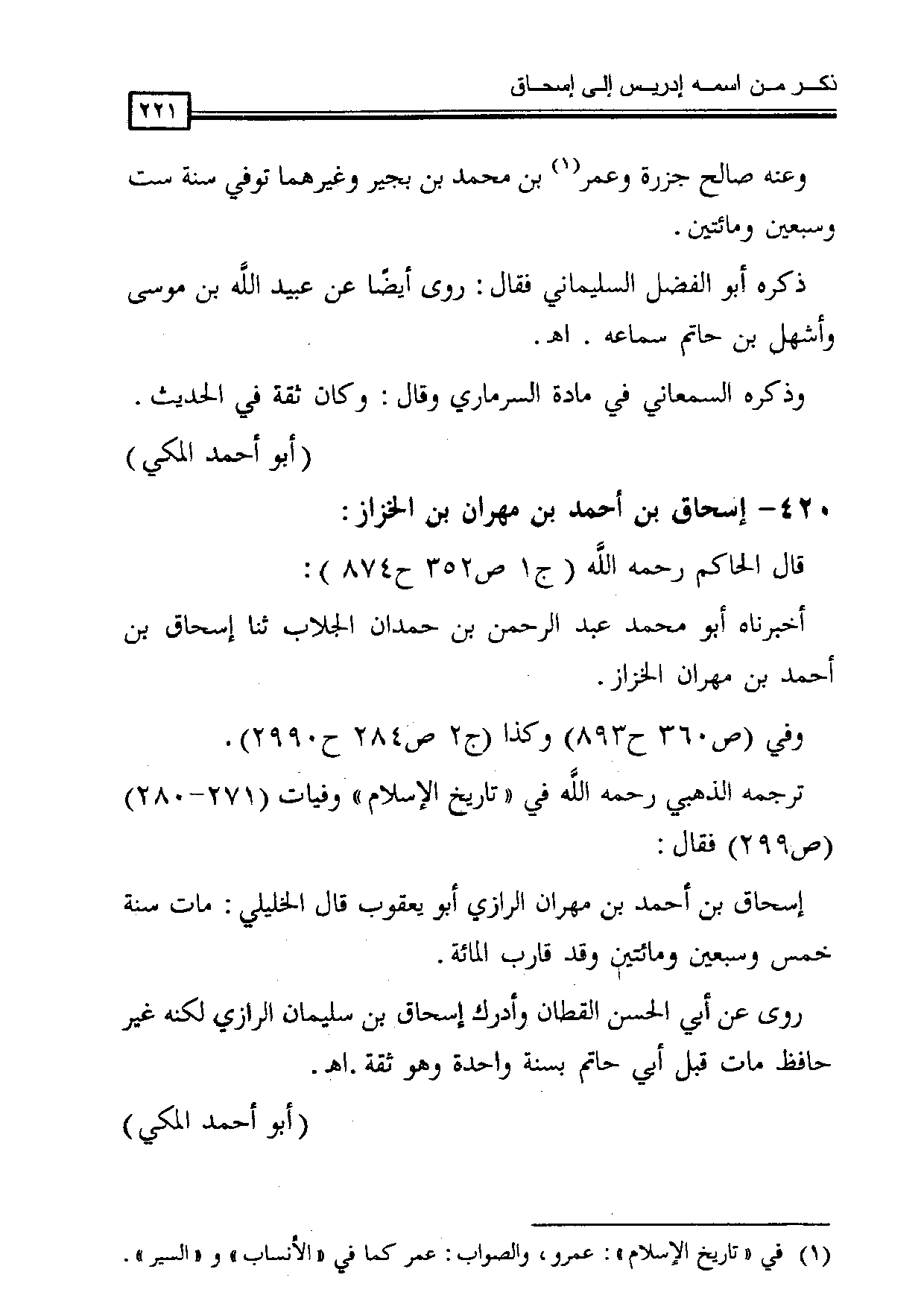 420 - إسحاق بن أحمد بن مهران بن الخزاز: