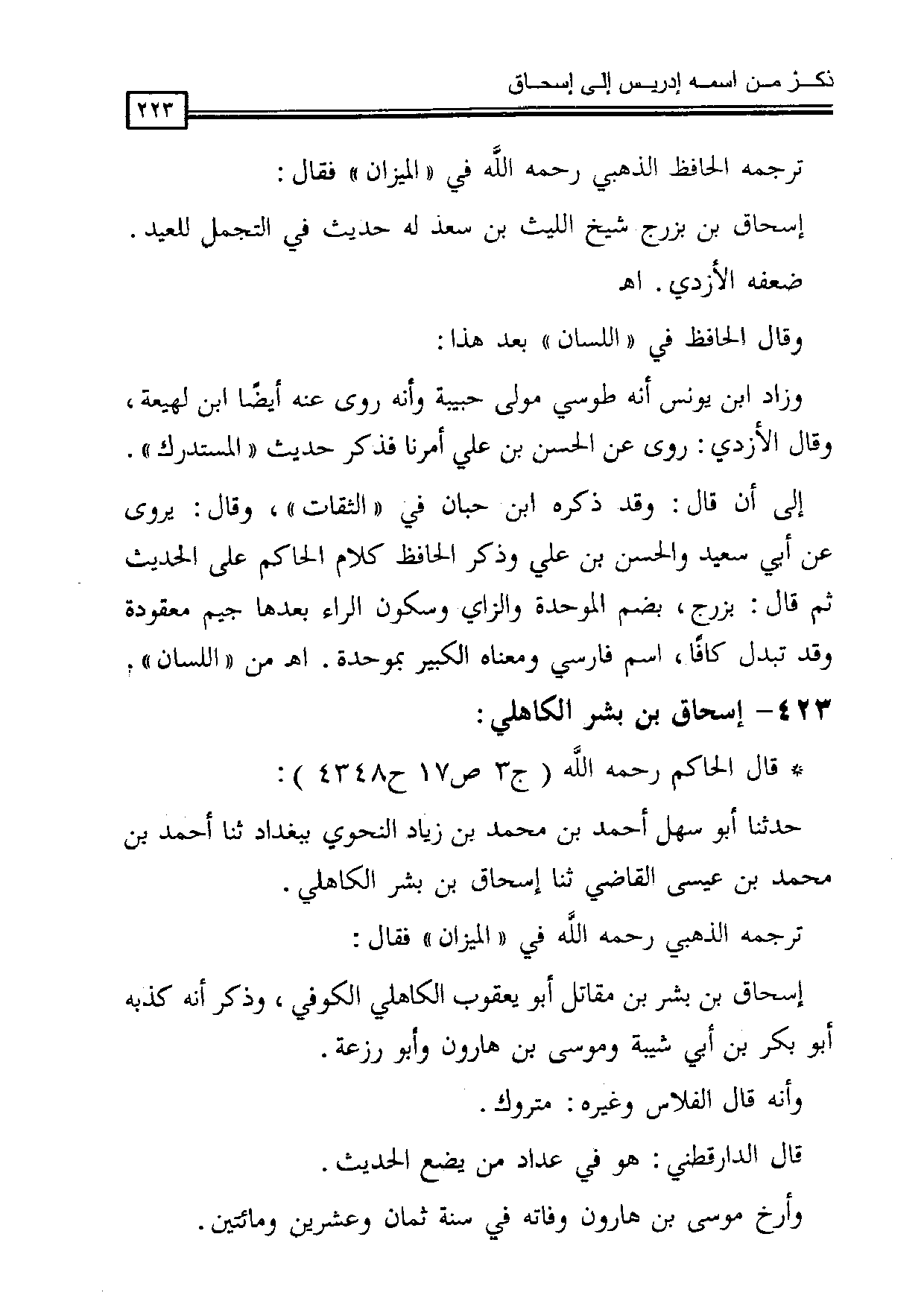 حدثنا أبو سهل أحمد بن محمد بن زياد النحوي ببغداد، ثنا أحمد بن محمد بن عيسى القاضي، ثنا إسحاق بن بشر الكاهلي.