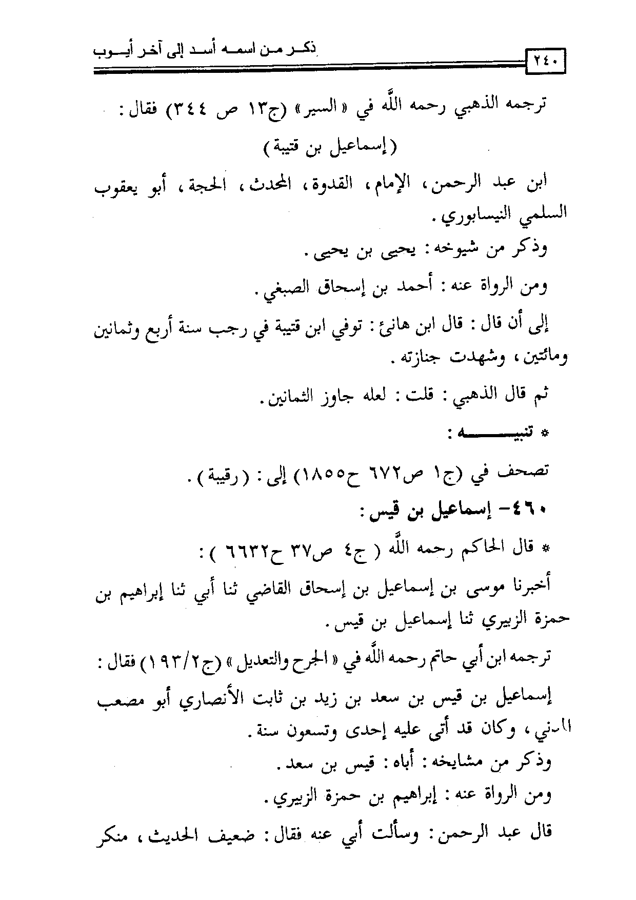أخبرنا موسى بن إسماعيل بن إسحاق القاضي، ثنا أبي، ثنا إبراهيم بن حمزة الزبيري، ثنا إسماعيل بن قيس.
