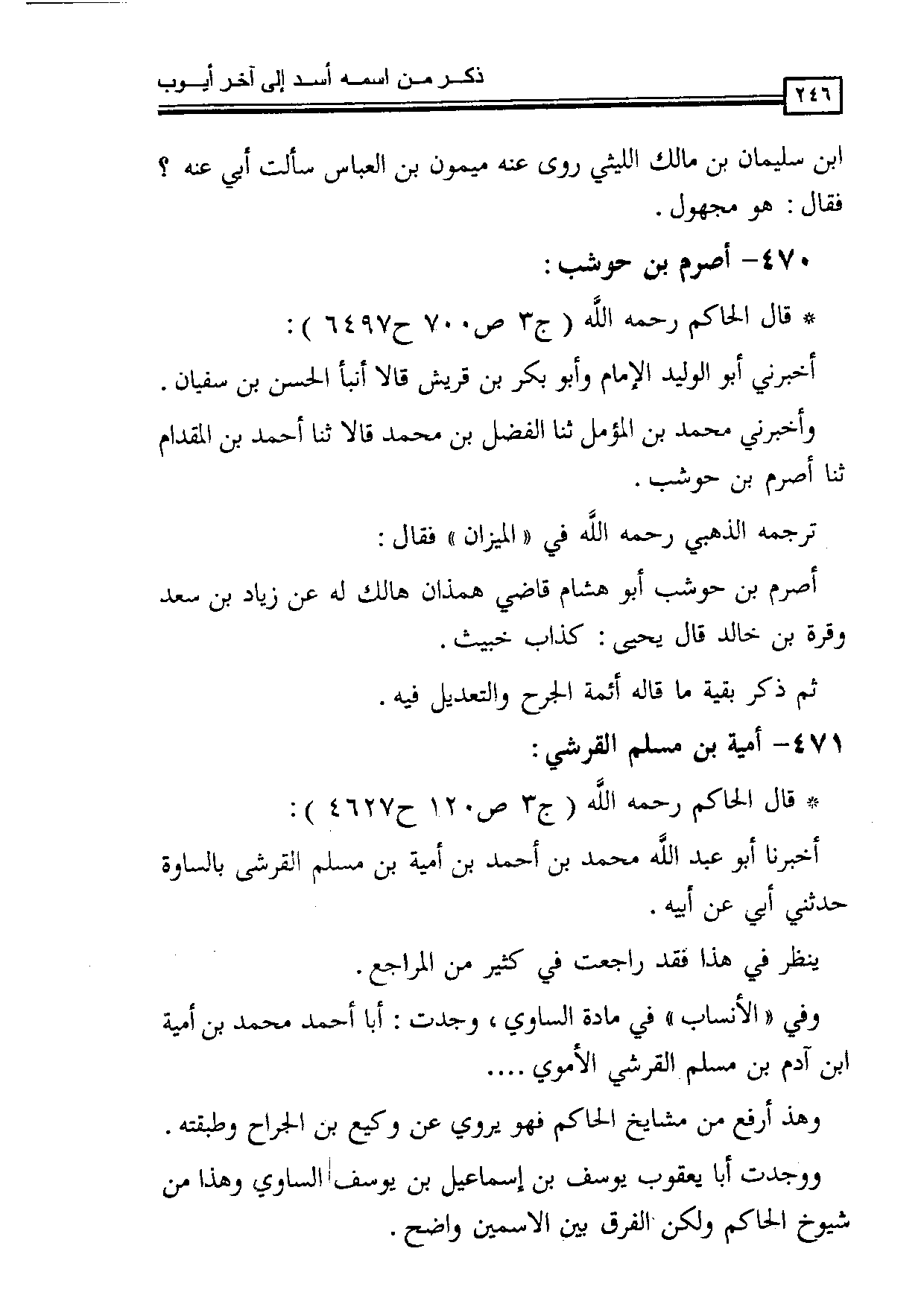 ووجدت أبا يعقوب يوسف بن إسماعيل بن يوسف الساوي، وهذا من شيوخ الحاكم، ولكن الفرق بين الاسمين واضح.