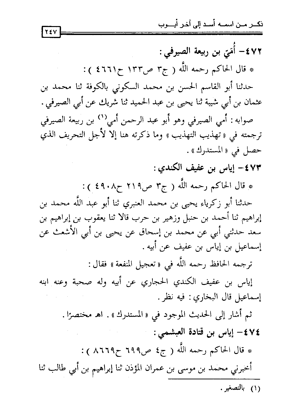 صوابه: أمي الصيرفي، وهو أبو عبد الرحمن أمي بن ربيعة الصيرفي ترجمته في " تهذيب التهذيب " وما ذكرته هنا إلا لأجل التحريف الذي حصل في " المستدرك ".