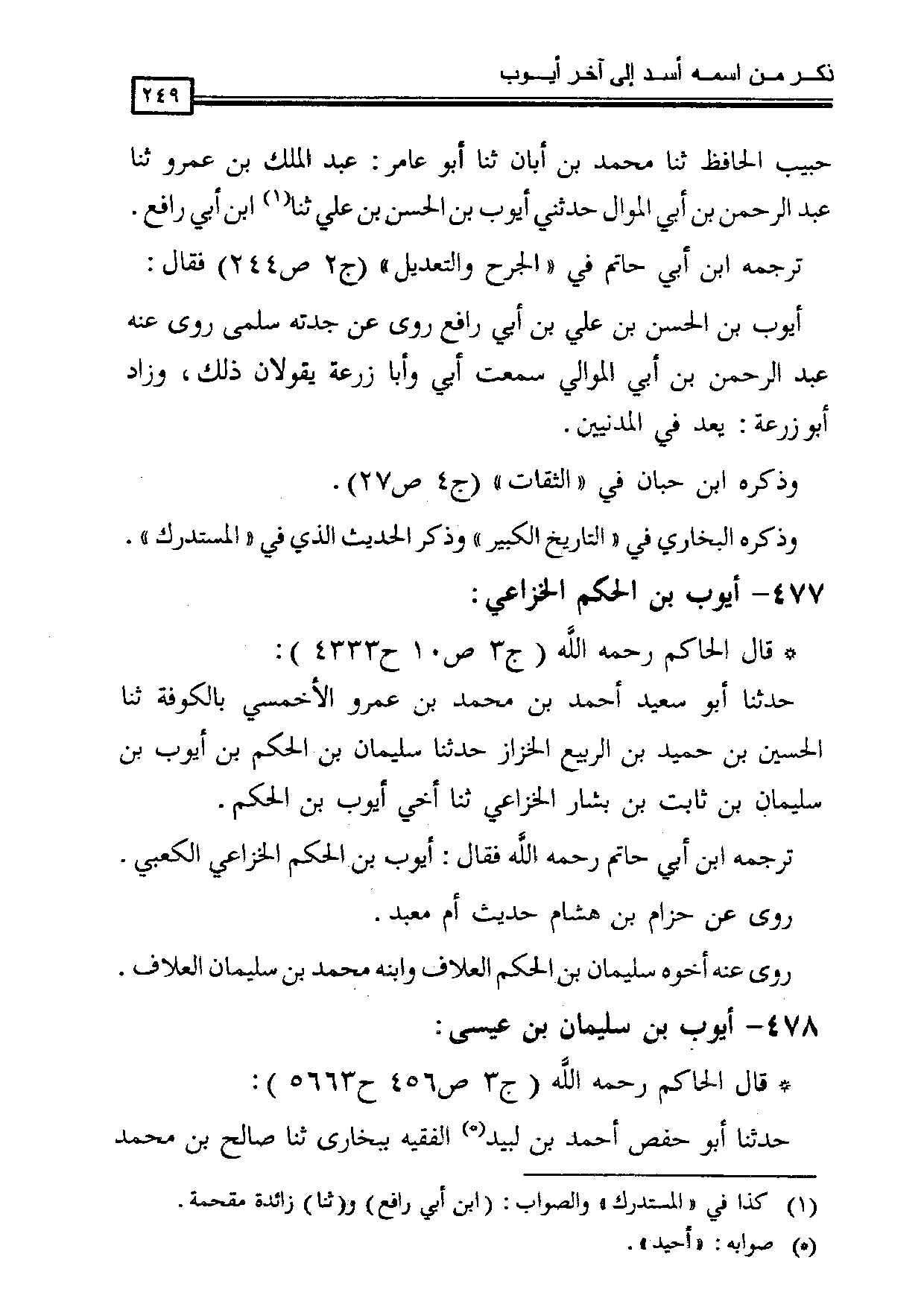 حدثنا أبو سعيد أحمد بن محمد بن عمرو الأخمسي بالكوفة، ثنا الحسين بن حميد بن الربيع الخزاز، حدثنا سليمان بن الحكم بن أيوب بن سليمان بن ثابت بن بشار الخزاعي، ثنا أخي أيوب بن الحكم.