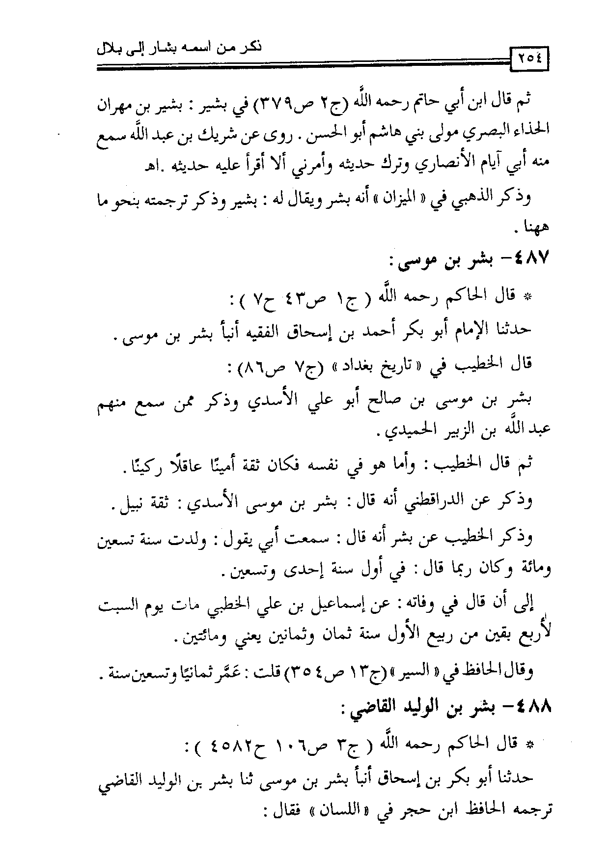 وذكر عن الدارقطني أنه قال: بشر بن موسى الأسدي: ثقة نبيل.