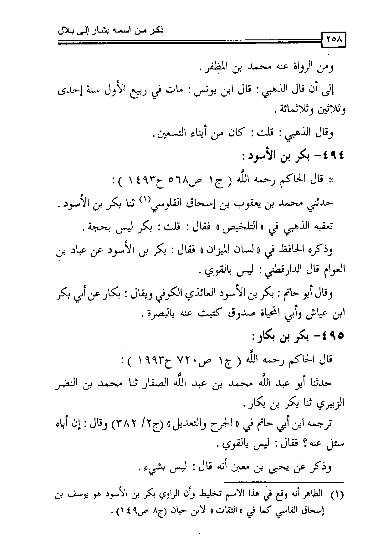 وذكره الحافظ في " لسان الميزان " فقال: بكر بن الأسود عن عباد بن العوام، قال الدارقطني: ليس بالقوي.