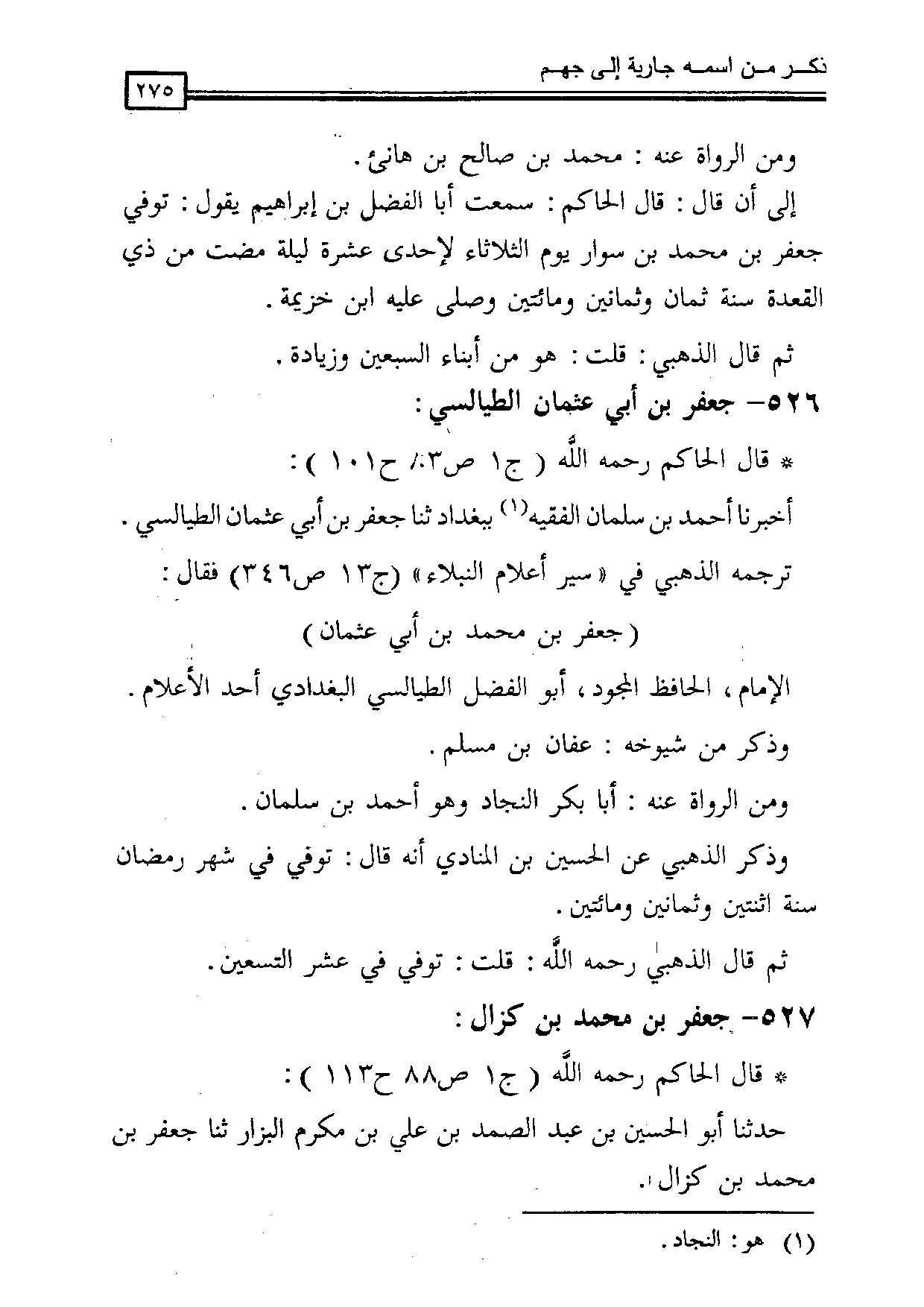 أخبرنا أحمد بن سلمان الفقيه ببغداد، ثنا جعفر بن أبي عثمان الطيالسي.