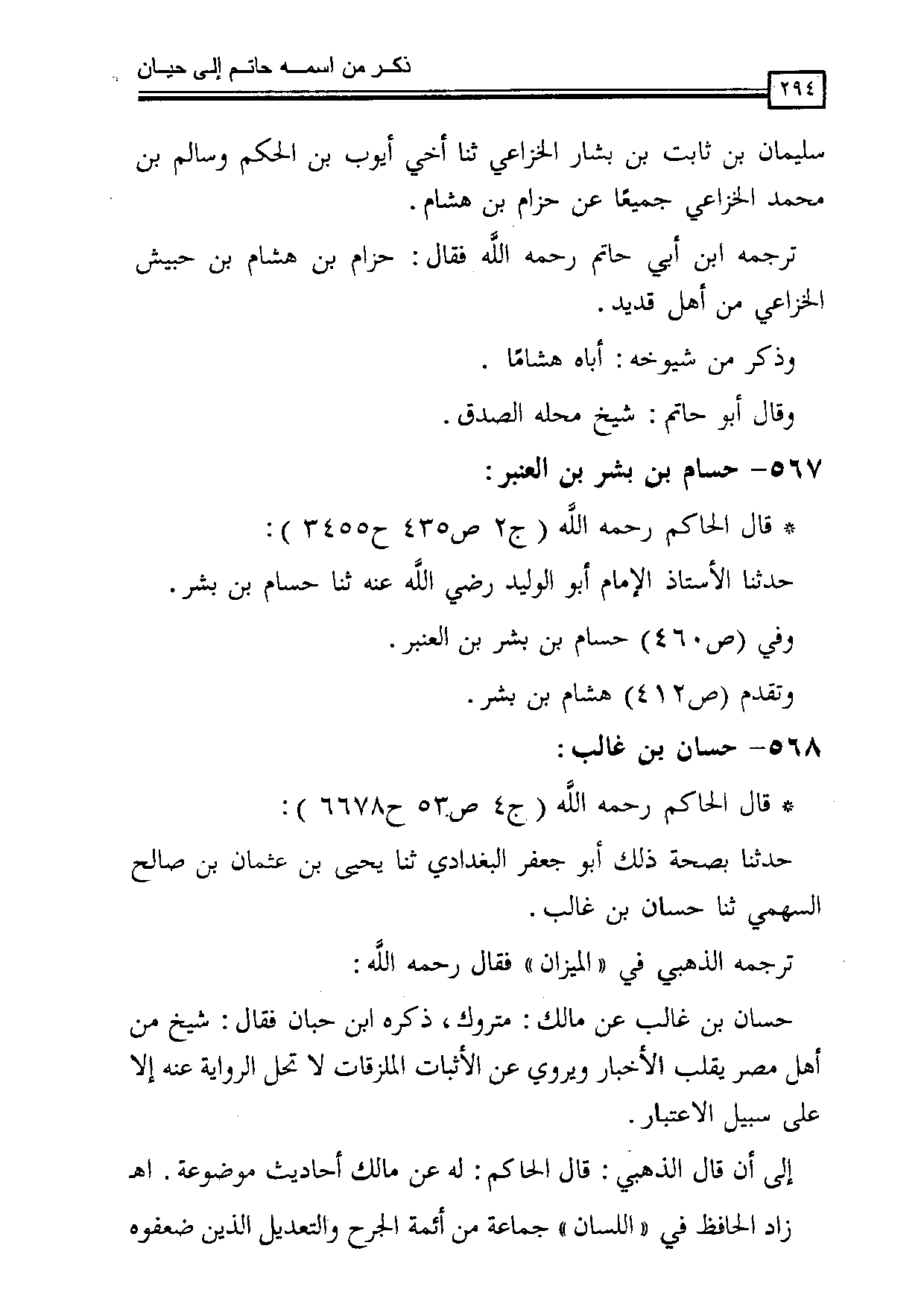 حدثنا الأستاذ الإمام أبو الوليد رضي الله عنه، ثنا حسام بن بشر، وفي (ص 460) حسام بن بشر بن العنبر.