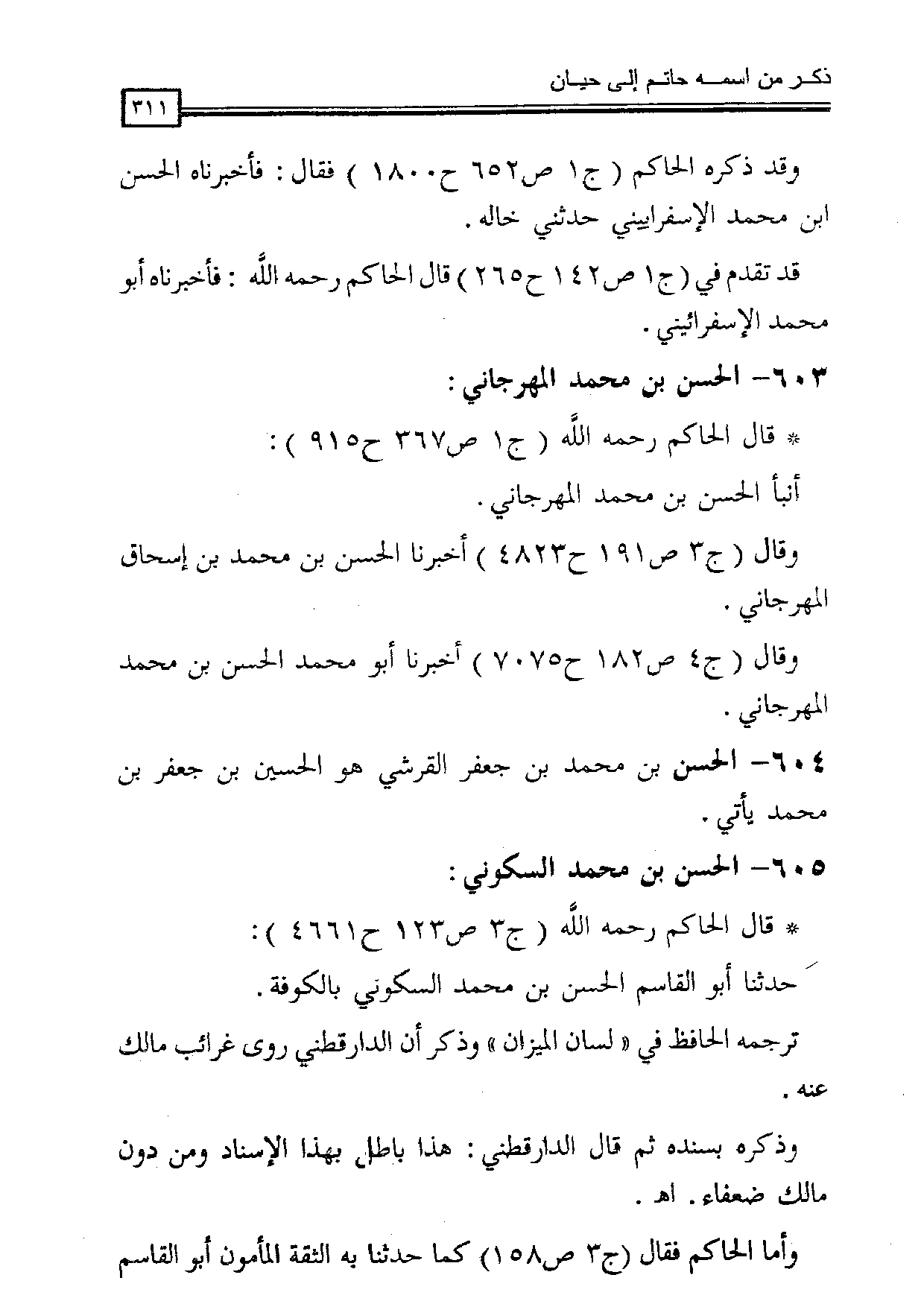 وقال (ج 3 ص 191 ح 4823) أخبرنا الحسن بن محمد بن إسحاق المهرجاني.