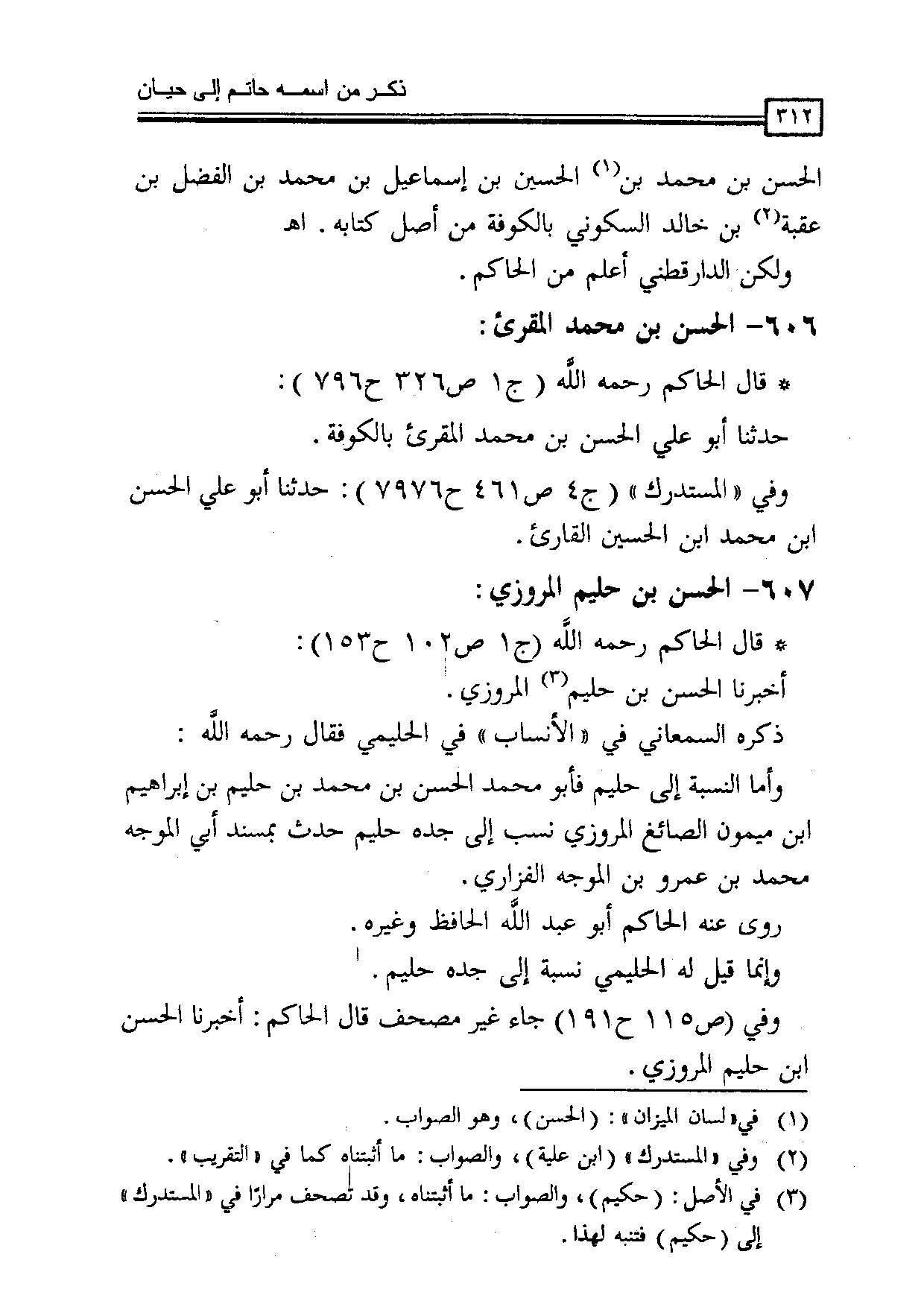 وفي (ص 115 ح 191) جاء غير مصحف قال الحاكم: أخبرنا الحسن بن حليم المروزي.